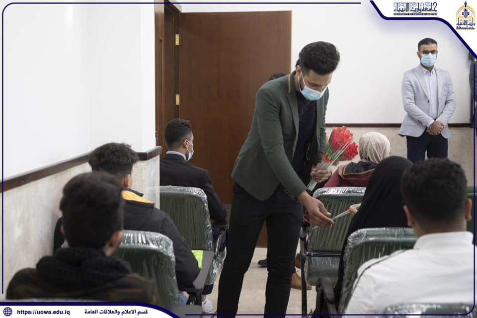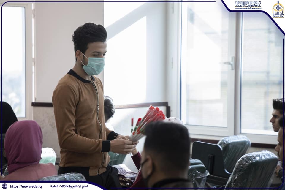 مبادرة جميلة من طلبة كلية الادارة والاقتصاد في جامعة وارث الانبياء(عليه السلام) في استقبال زملائهم من طلبة المرحلة الأولى بالزهور في يومهم الدراسي الاول .