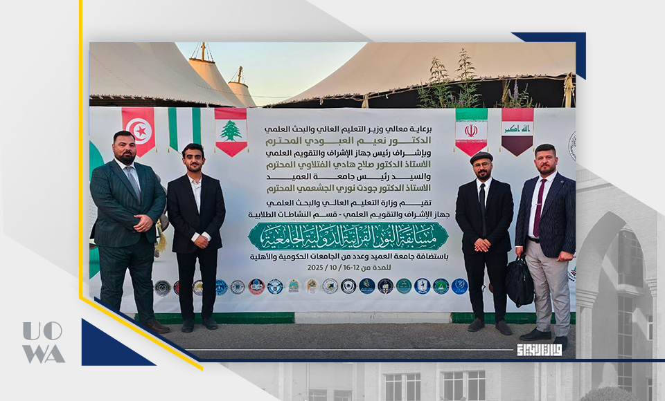 شاركت جامعة وارث الأنبياء (عليه السلام) في مسابقة النور القرآنية الدولية الجامعية التي نظّمتها وزارة التعليم العالي والبحث العلمي، بمشاركة واسعة من (53) جامعة عراقية و**(6) جامعات أجنبية** من مختلف دول العالم، واستضافتها جامعة العميد.