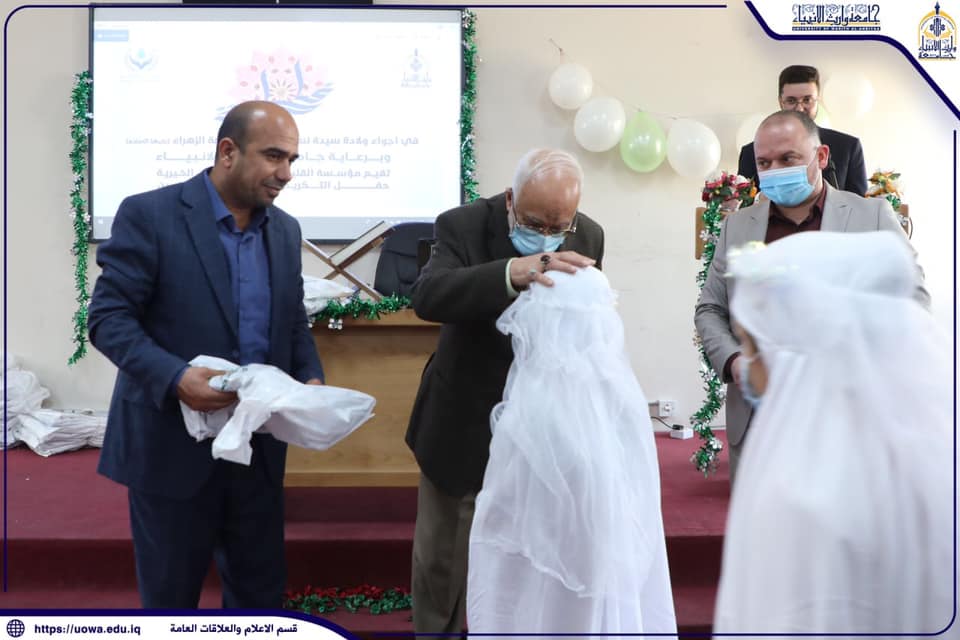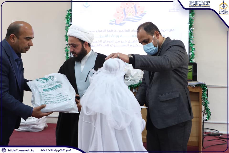 بمناسبة ولادة الصديقة الطاهرة فاطمة الزهراء (عليها السلام) احتضنت جامعة وارث الانبياء(عليه السلام) احتفالاً لمؤسسة (القليل خير من الحرمان الخيرية) لتكليف مجموعة من الايتام الذين بلغوا سن التكليف الشرعي ، حيث استقبل السيد رئيس الجامعة الاستاذ الدكتور طالب حسن موسى الاعزاء الايتام وتبادل الحديث معهن وحثهن على الالتزام بتعاليم الدين والاقتداء بالسيدة فاطمة الزهراء (عليها السلام) ، من جانبه عبر الشيخ محمد الركابي ممثل مؤسسة القليل خير من الحرمان الخيرية عن شكره وتقديره للقائمين على الجامعة لاستقبالهم للسنة الثانية لحفل تكليف السن الشرعي ودعمهم لهذه الشريحة المهمة والمظلومة في المجتمع .