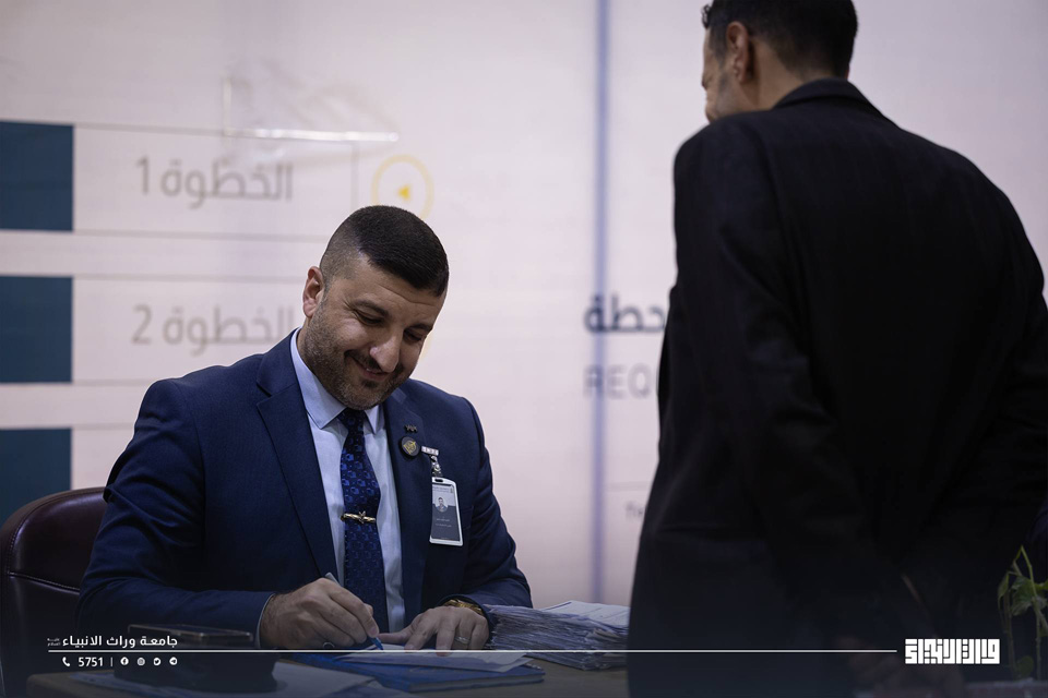 في إطار المتابعة المؤسسية وتطوير الأداء الإداري، عقد رئيس جامعة وارث الأنبياء (ع) الأستاذ الدكتور إبراهيم سعيد الحياوي، يرافقه المساعد العلمي الأستاذ الدكتور واقد الموسوي، لقاءً مع فريق التسجيل في الجامعة، عقب مباشرة طلبة المرحلة الأولى بالدوام الرسمي.