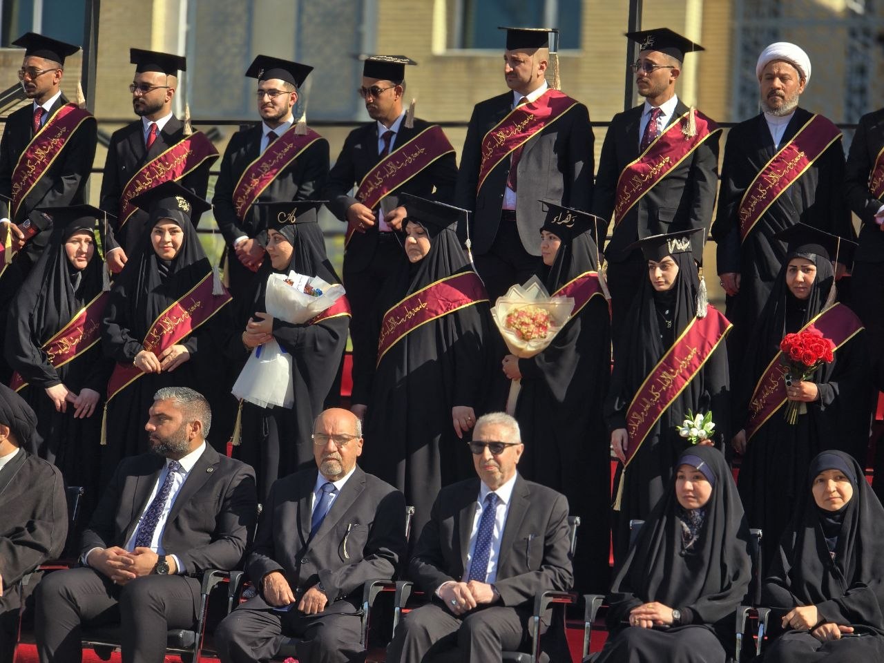 مراسم التقاط صورة التخرج لطلبة كلية العلوم الإسلامية بحضور عمادة الكلية والكادرين التدريسي والإداري