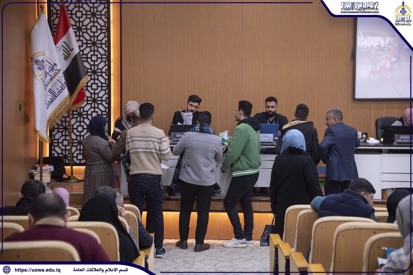 توافد الطلبة للتسجيل في كليات وأقسام جامعة وارث الانبياء(عليه السلام) لليوم الثاني على التوالي لضمان حجز مقعد دراسي لهم.