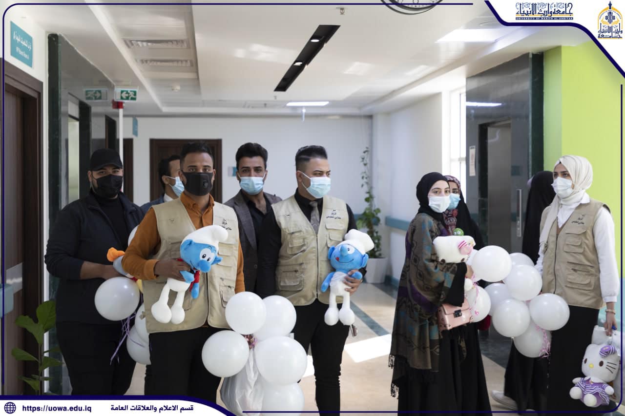 ضمن المشاريع الخيرية المستمرة التي يعمل بها الفريق وبدعم ورعاية رئاسة الجامعة زار فريق عطاء طلبة جامعة وارث الأنبياء (عليه السلام ) مؤسسة وارث للأمراض السرطانية التابعة للأمانة العامة للعتبة الحسينية المقدسة ومركز الأورام السرطانية في مدينة الامام الحسين ( عليه السلام ) الطبية في كربلاء المقدسة لتقديم الدعم المعنوي للأطفال المرضى من هدايا والعاب ومستلزمات.
