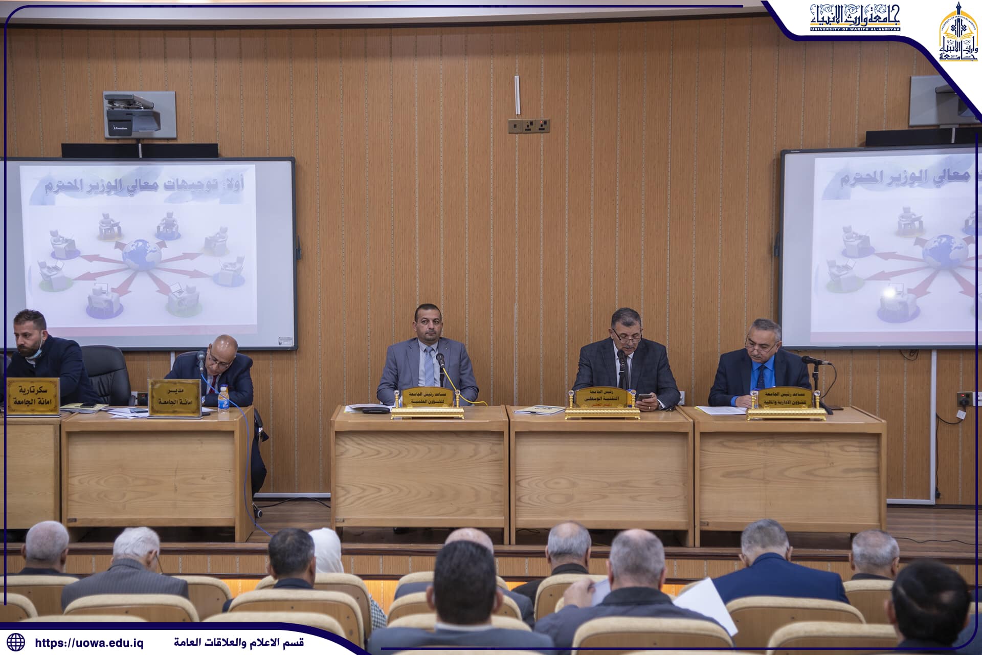 استضافت هيئة التعليم الجامعي متمثلةً بالأستاذ الدكتور حيدر التميمي ، ورئاسة جامعة وارث الأنبياء(عليه السلام )متمثلةً بالسيد رئيس الجامعة الأستاذ الدكتور إبراهيم الحياوي