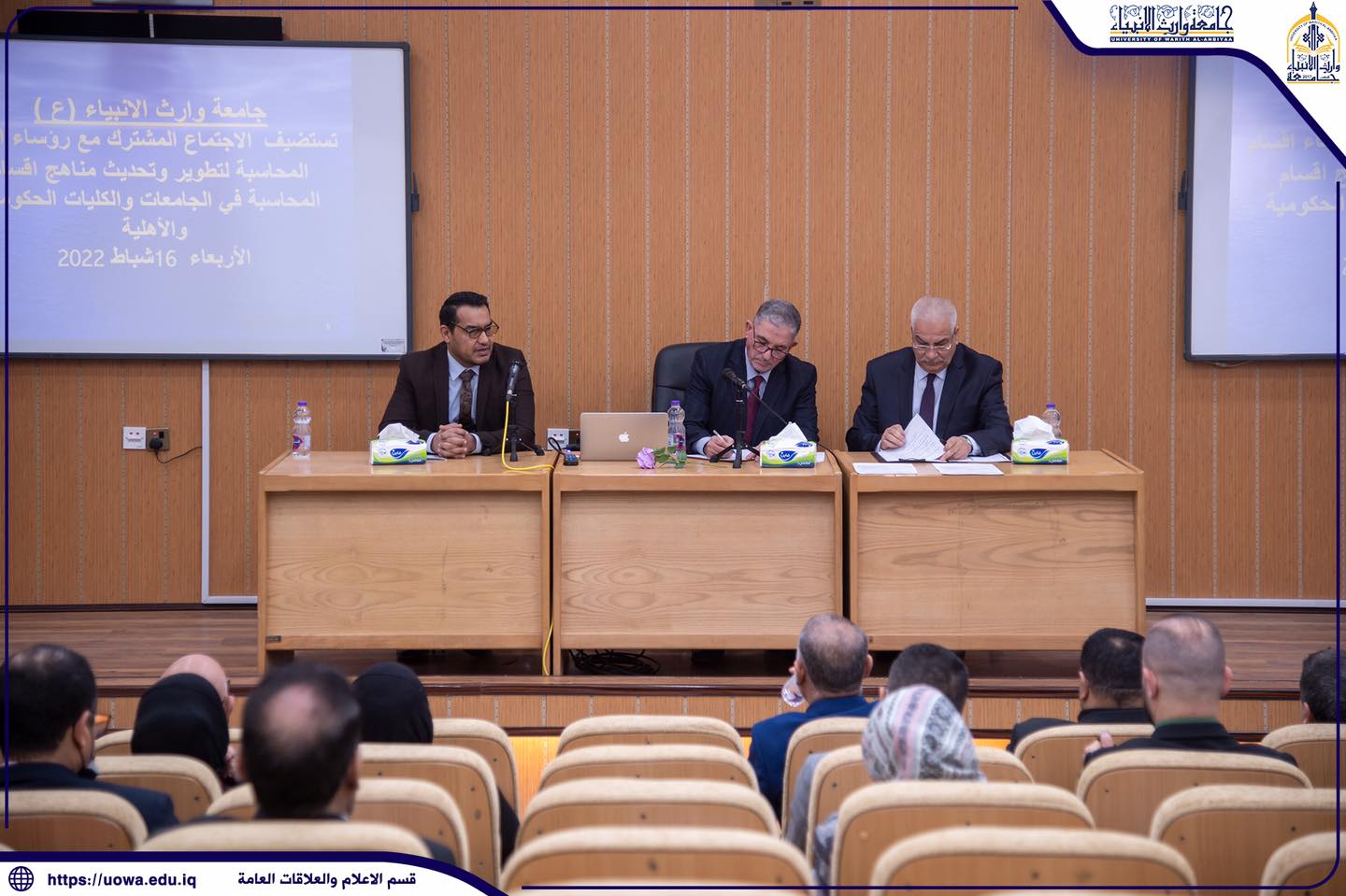برعاية وزارة التعليم العالي والبحث العلمي/ دائرة البحث والتطوير وبحضور رئيس اللجنة الوزارية لتطوير المناهج وممثل عن وزارة التعليم العالي والبحث العلمي، استضافت جامعة وارث الأنبياء(عليه السلام) الاجتماع السادس لرؤساء أقسام المحاسبة في الجامعات والكليات الحكومية والأهلية كافة.