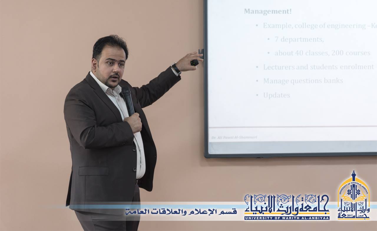 اقام مركز التعليم المستمر وبالتعاون مع قسم ضمان الجودة والأداء الجامعي حلقة نقاشية بعنوان ( الامتحانات الإلكترونية) القاها الدكتور علي فوزي التدريسي في جامعة كربلاء / كلية الهندسة، وقال الدكتور حاكم سماوي سلطان مدير مركز التعليم المستمر ان هذه الحلقة انطلقت ضمن اسبوع الجودة الذي سيكون اسبوع توعوي تثقيفي حول ضمان الجودة والأداء الجامعي في جامعة وارث الأنبياء (عليه السلام)، وتحدث الدكتور علي فوزي ان هذه الحلقة ألقيت لرفع الغموض والمخاوف عن هذا الموضوع لان الامتحانات الإلكترونية والتعليم الالكتروني اصبح حاجة ملحة وان اغلب الجامعات بدأت تدريجياً بتطبيقه وان المشكلة التي يعاني منها اغلب الاساتذه والطلاب انهم غير مهيأين على الطريقة الالكترونية، لذالك جاءت هذه المحاضرة لشرح المحددات والفوائد الكثيرة للامتحان الإلكتروني وماله من تسهيلات كثيرة للاساتذه في وضع الاسئلة وتصحيح وإعطاء النتائج بصورة سريعة