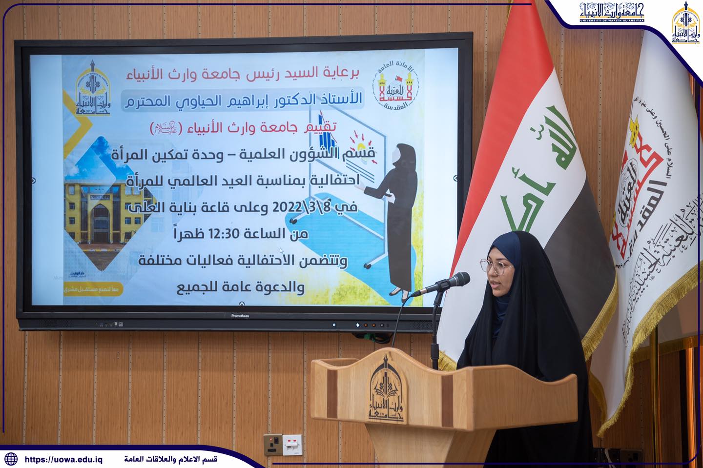 إذ تضمن المهرجان فعاليات تكريم للموظفات المثابرات في الجامعة ،وكلمة لممثلة وحدة تمكين المرأة الدكتورة نضال المالكي أكدت فيها على أهمية تفعيل دور المرأة في المجتمع وتمكينها وتعزيز مشاركتها، فضلاً عن دورها في الحفاظ على أسرتها لأنها نواة المجتمع.
