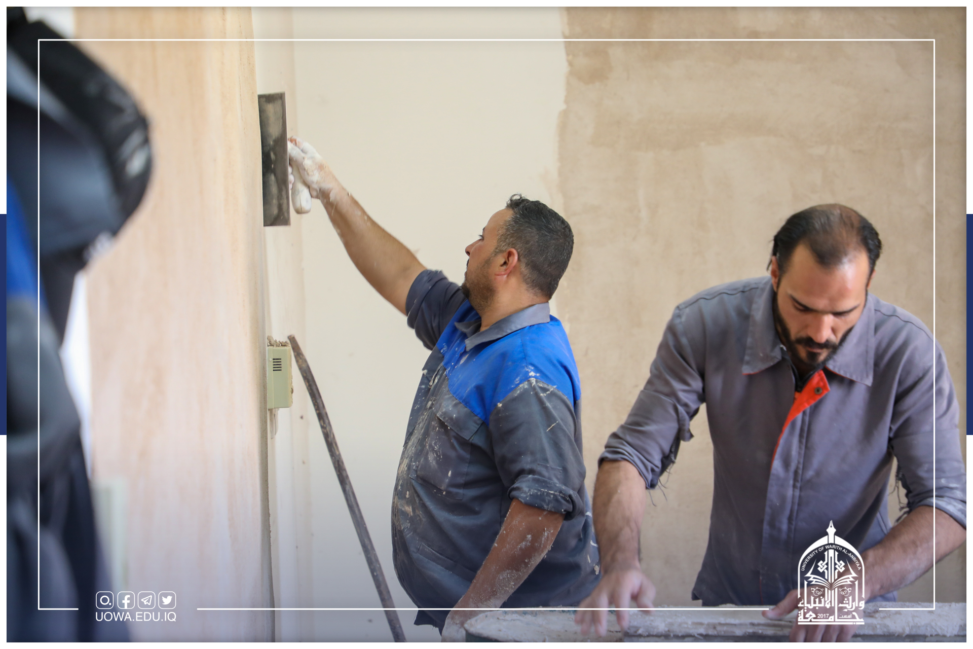 تتواصل جهود ملاكات قسم شؤون الديوان في جامعة وارث الانبياء "عليه السلام" إعادة تأهيل وترتيب الممرات ومداخل الكليات والمجمعات الخدمية، سعياً منها لتوفير كل سبل الراحة لطلبتنا الاعزاء.