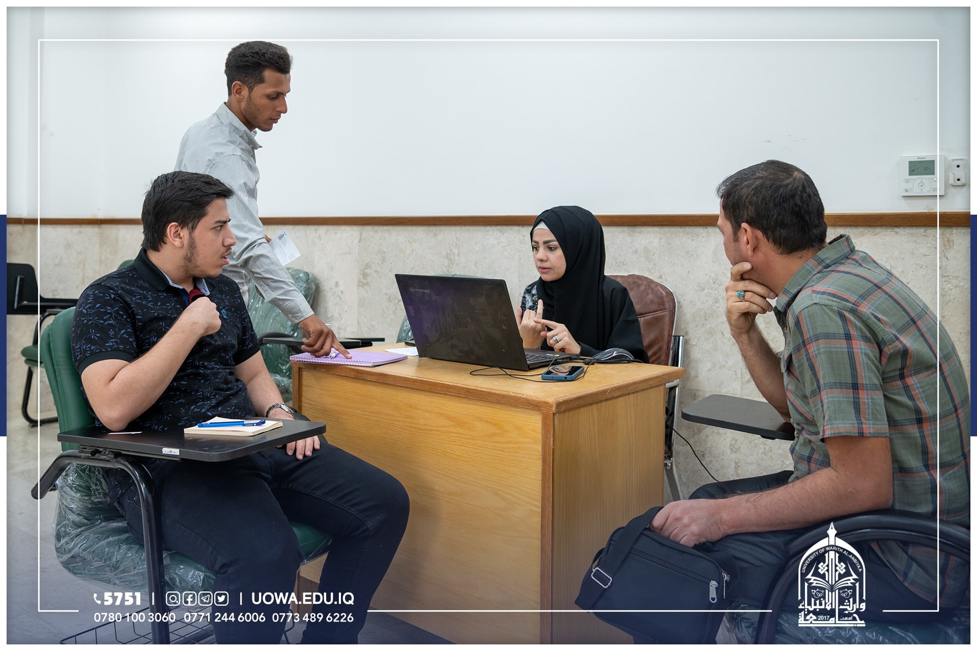 قسم التسجيل في جامعة وارث الانبياء(عليه السلام) مستمر باستقبال الطلبة الاعزاء الراغبين بالتقديم على كليات واقسام الجامعة حيث تضافرت جهود العاملين في القسم والأقسام المسانده له وعلى مدار أيام الاسبوع وأيام العطل(الجمعة والسبت) ومن الساعة ٨صباحاً الى ٥مساءً.