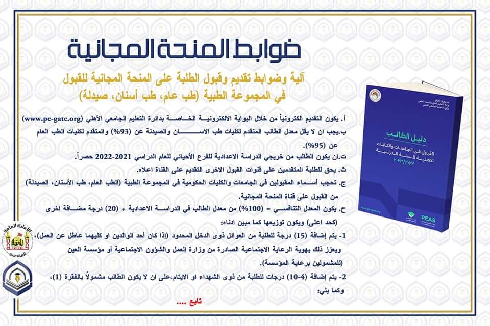 ضوابط ومحددات الحصول على المنحه المجانيه للعام الدراسي 2022_2023 لكلية الطب البشري