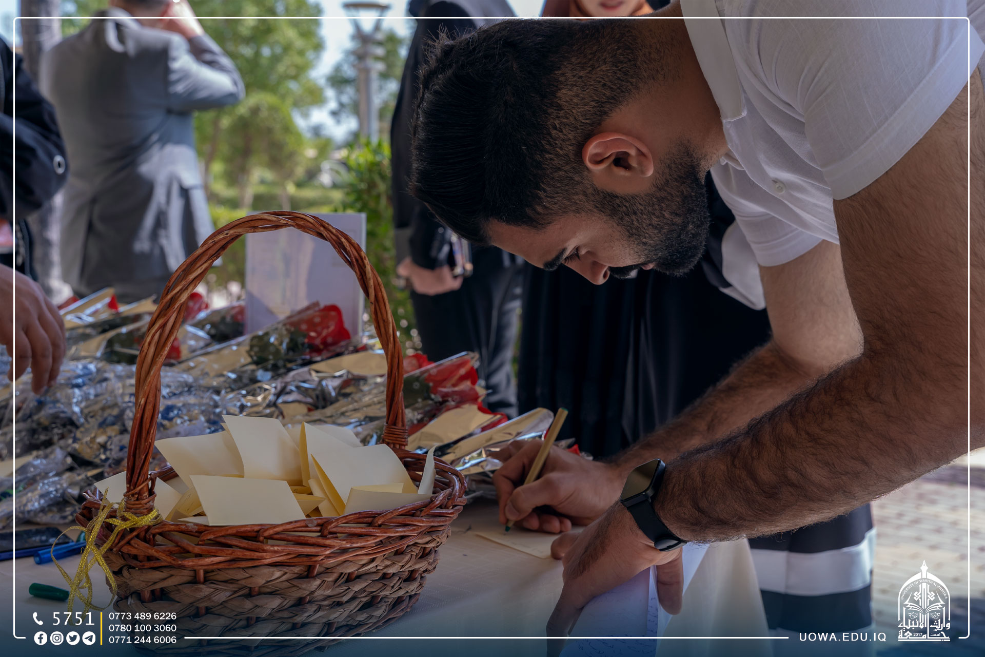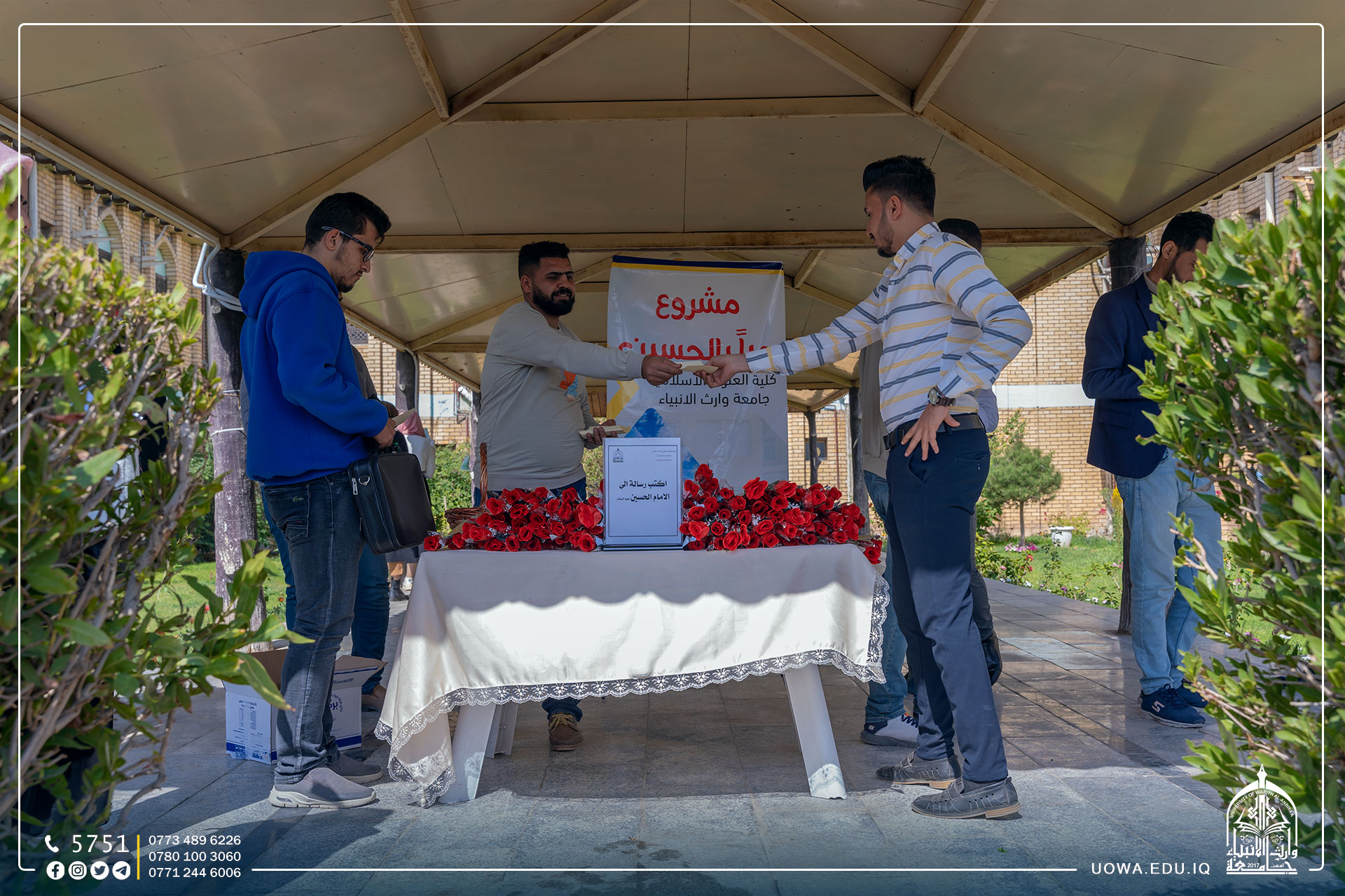 بالصور... ضمن مشروع حبا بالحسين(عليه السلام) الذي تقيمه كلية العلوم الاسلامية في جامعة وارث الانبياء (عليه السلام)، فعالية "اكتب رسالة الى الامام الحسين(عليه السلام)" لطلبة الجامعة بمناسبة الولادات الشعبانية المباركة.
