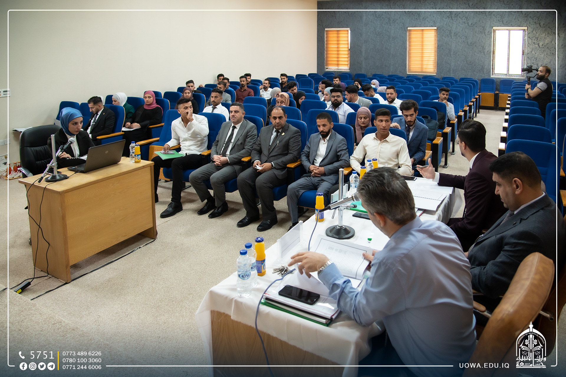 جانب من مناقشة بحوث التخرج لطلبة المرحلة الرابعة في كلية التمريض بجامعة وارث الانبياء (عليه السلام ) وبالتعاون مع كلية التمريض جامعة كربلاء