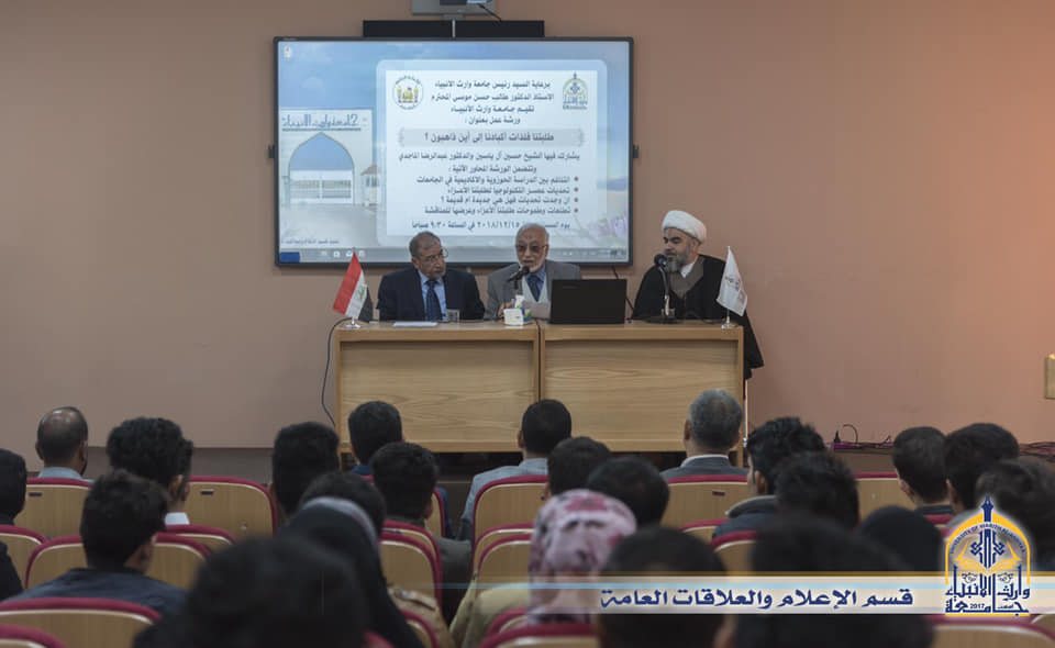 انطلاقا من حرص رئاسة الجامعة على توعية وتثقيف الطلبة الأعزاء أقامت جامعة وارث الانبياء التابعة للعتبة الحسينية المقدسة ورشة عمل بعنوان ( طلبتنا فلذات اكبادنا الى اين ذاهبون؟ ) اعتمدت فيها رئاسة الجامعة عدة محاور هي عن التناغم بين الدراسة الحوزوية والاكاديمية في الجامعات ،وتحديات عصر التكنولوجيا لطلبتنا الاعزاء، وأن وجدت تحديات فهل هي قديمة ام جديدة ،وتطلعات وطموحات طلبتنا الاعزاء وعرضها للمناقشة،حيث وشارك فيها معتمد المرجعية الدينية العليا الشيخ حسين ال ياسين والدكتور عبد الرضا الماجدي وبرعاية مباشرة من رئيس الجامعة الاستاذ الدكتور طالب حسن الموسوي وقد ذكر الشيخ حسين ال ياسين أن الورشة كانت مثمرة وهادفة ونابعة من الرعاية الأبوية التي تقدمها رئاسة الجامعة لطلبتها الاعزاء لتوجيههم نحو التفكير الصحيح والوعي والارادة الجادة النابعة من فطرة سليمة هدفها بناء مجتمع وخدمة لديننا ووطننا.