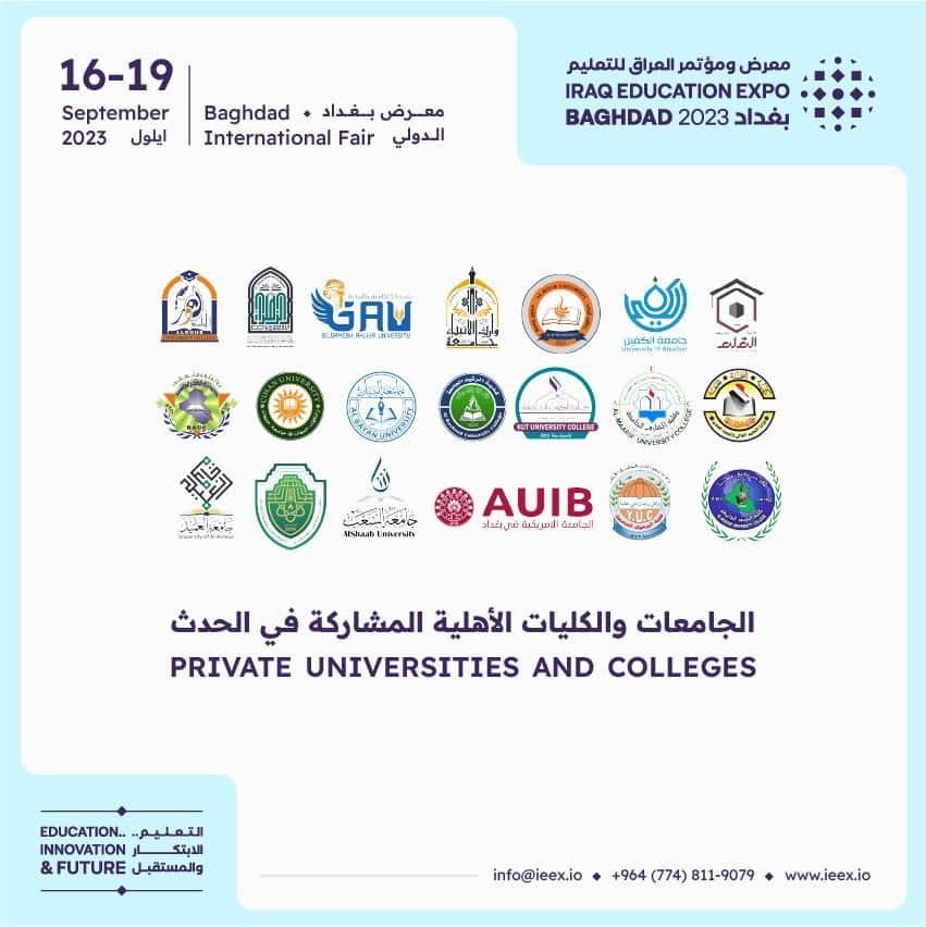 جامعة وارث الانبياء(عليه السلام) تشترك في"معرض ومؤتمر العراق للتعلم"، الذي تقيمه وزارة التعليم العالي والبحث العلمي