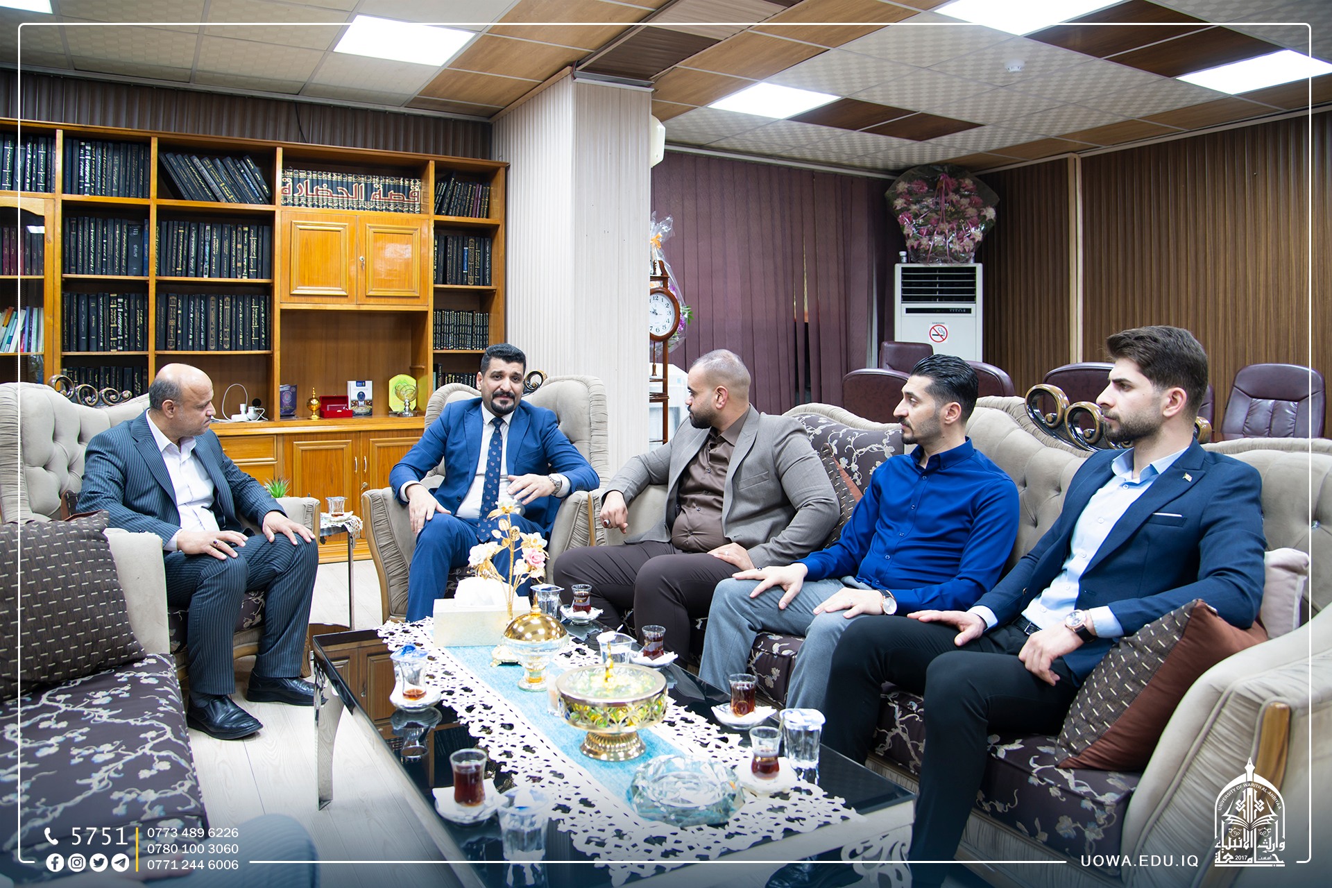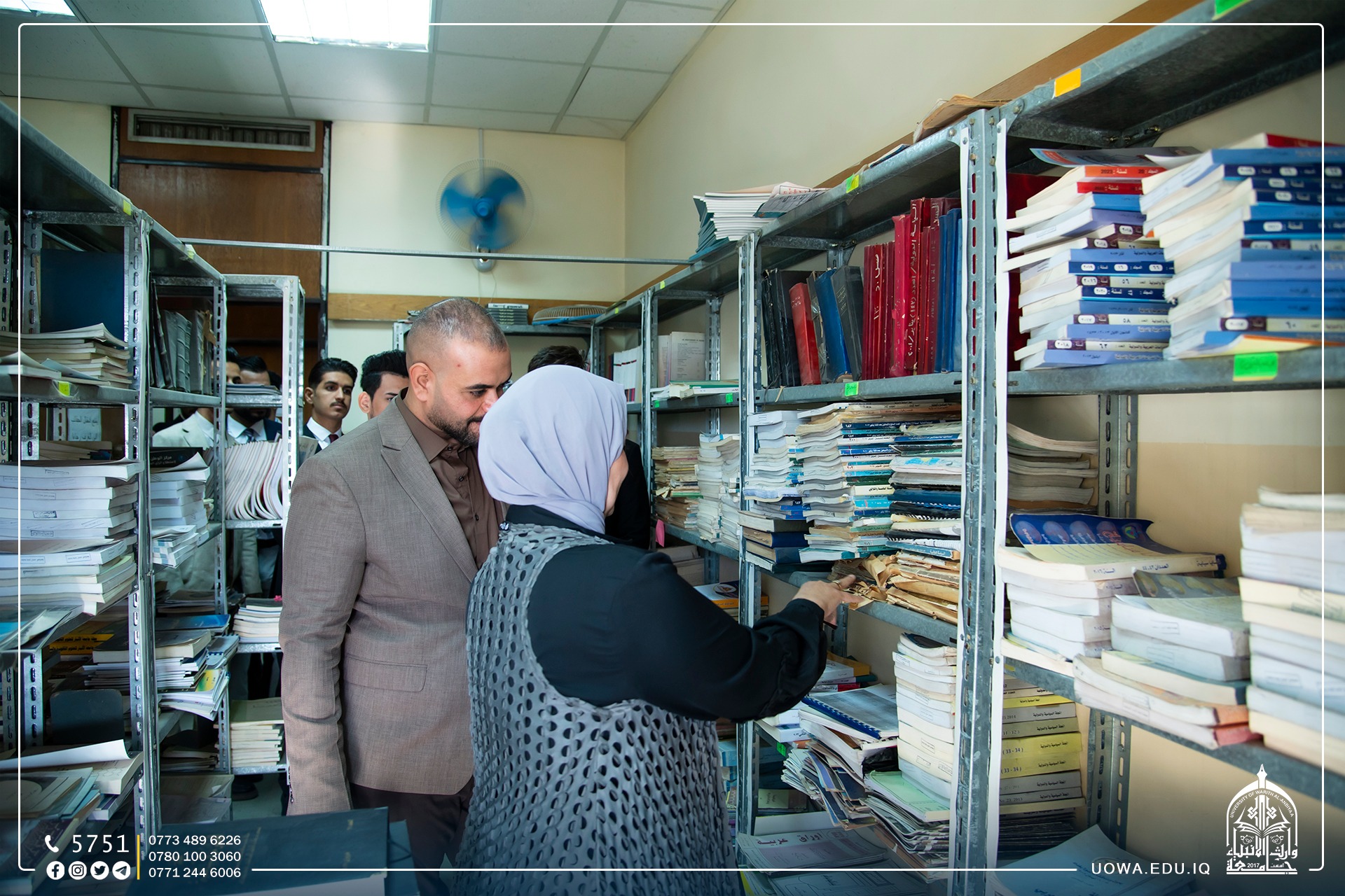 وتضمنت الزيارة جولة ميدانية مشتركة للقاعات الدراسية والمكتبة وبنايات الكلية الاخرى للاطلاع على الواقع التدريسي والعلمي في الكلية.