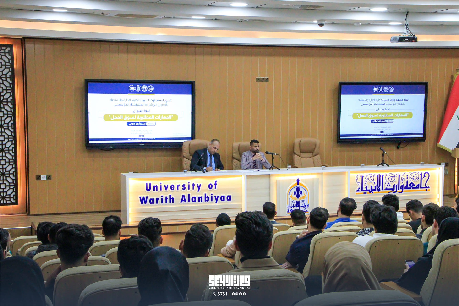 بحضور عميد كلية الإدارة والاقتصاد، الدكتور عواد الخالدي، وعدد من أعضاء هيئة التدريس، نظم قسم إدارة الأعمال في الكلية ندوة علمية بعنوان "المهارات المطلوبة لسوق العمل"، قدمها السيد أزهر الركابي.
