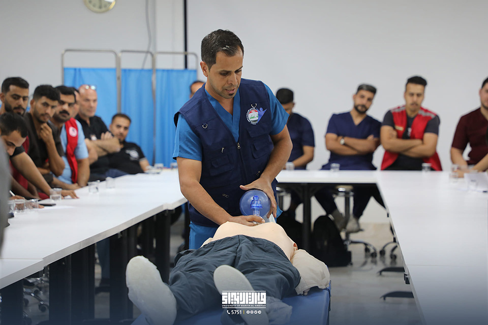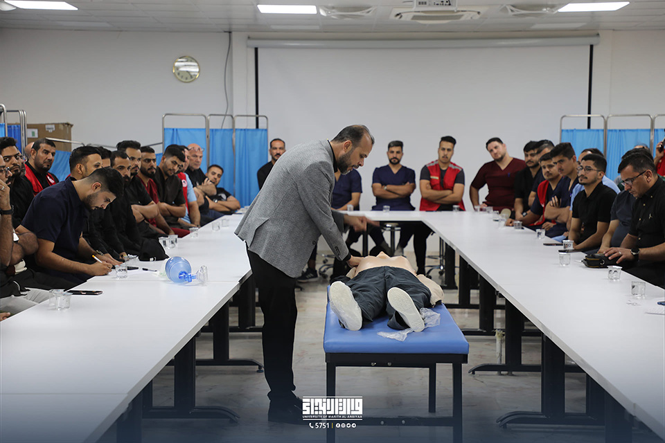 نظمت كلية الطب في جامعة وارث الأنبياء (عليه السلام) بالتعاون مع "المركز الإقليمي لطب الطوارئ" ورشة تدريبية حول الإسعافات الأولية المتقدمة (BLS) في مختبرات الكلية، بحضور رئيس الجامعة الأستاذ الدكتور إبراهيم الحياوي وعميد كلية الطب الأستاذ الدكتور علي عبد سعدون الغزي ومدير مركز طب الطوارئ الدكتور فاضل عكله الربيعي.