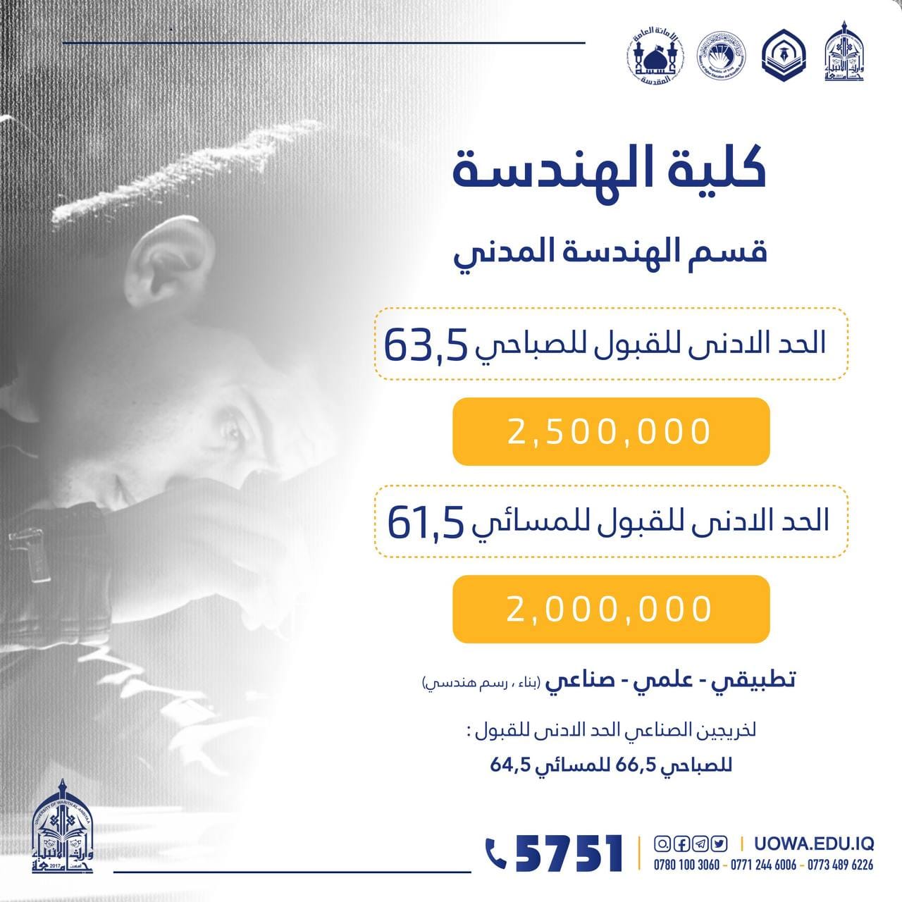 علماً ان فريق التسجيل في جامعة وارث الانبياء(عليه السلام) متواجد طيلة ايام الاسبوع عدا يوم الجمعة للاجابة عن استفساراتكم ومساعدتكم بالتقديم.