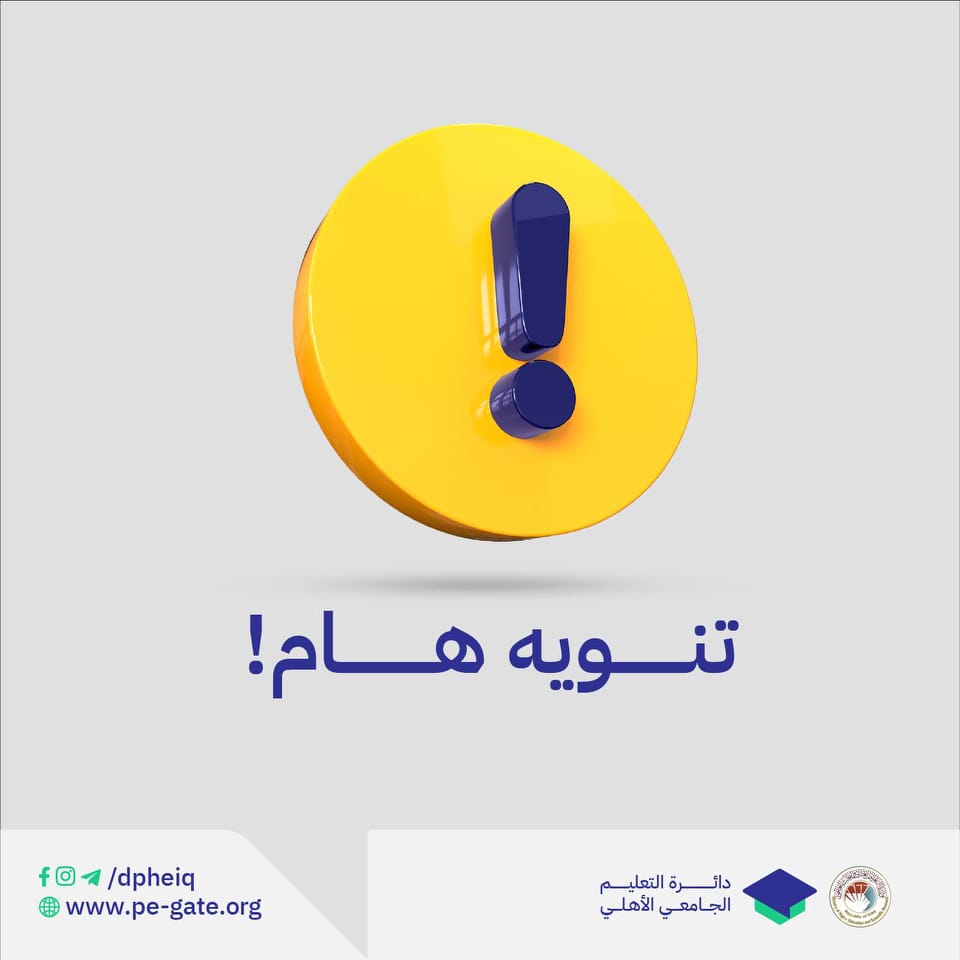 وتدعو وزارة التعليم أبناءها الطلبة الى الاطلاع على الدليل والتعرف على الخيارات المتعلقة بالجامعات والكليات الأهلية والأجور الدراسية للأقسام العلمية والإنسانية التي سيتاح للطالب التقديم اليها في الاستمارة الإلكترونية.