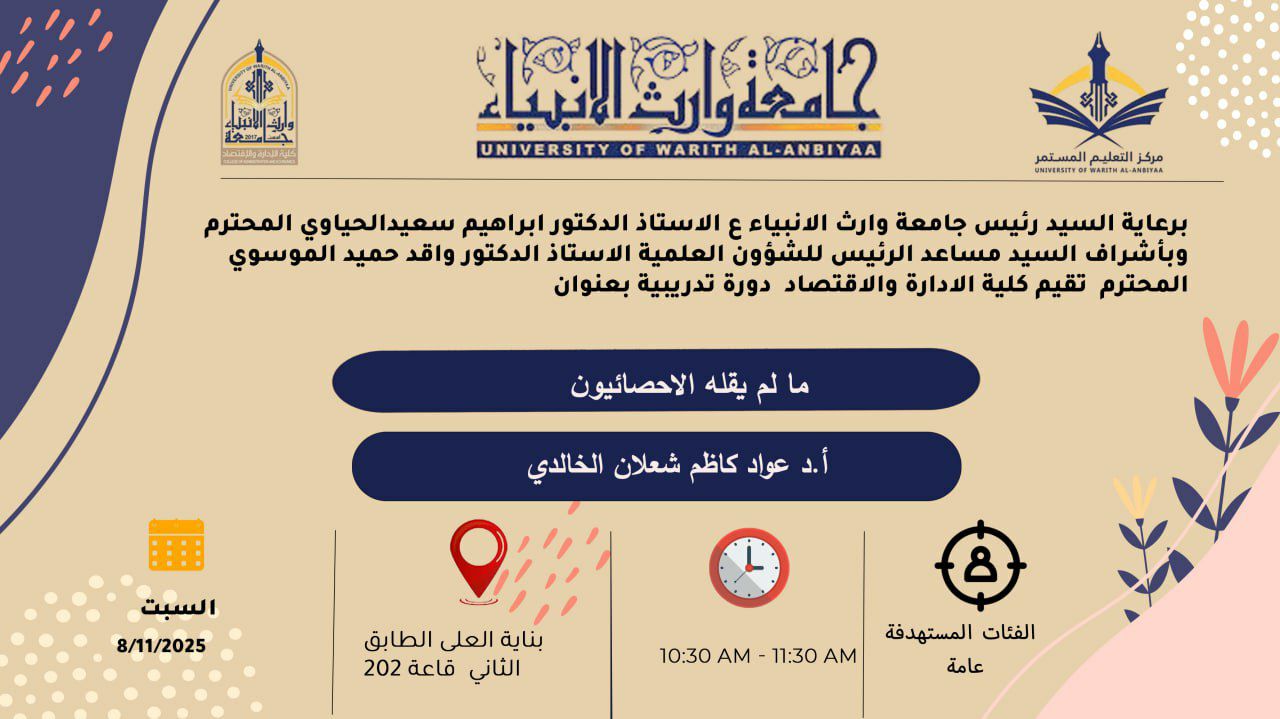 تقيم كلية الادارة والاقتصاد في جامعة وارث الانبياء (ع) دورة بعنوان «ما لم يقله الاحصائيون»