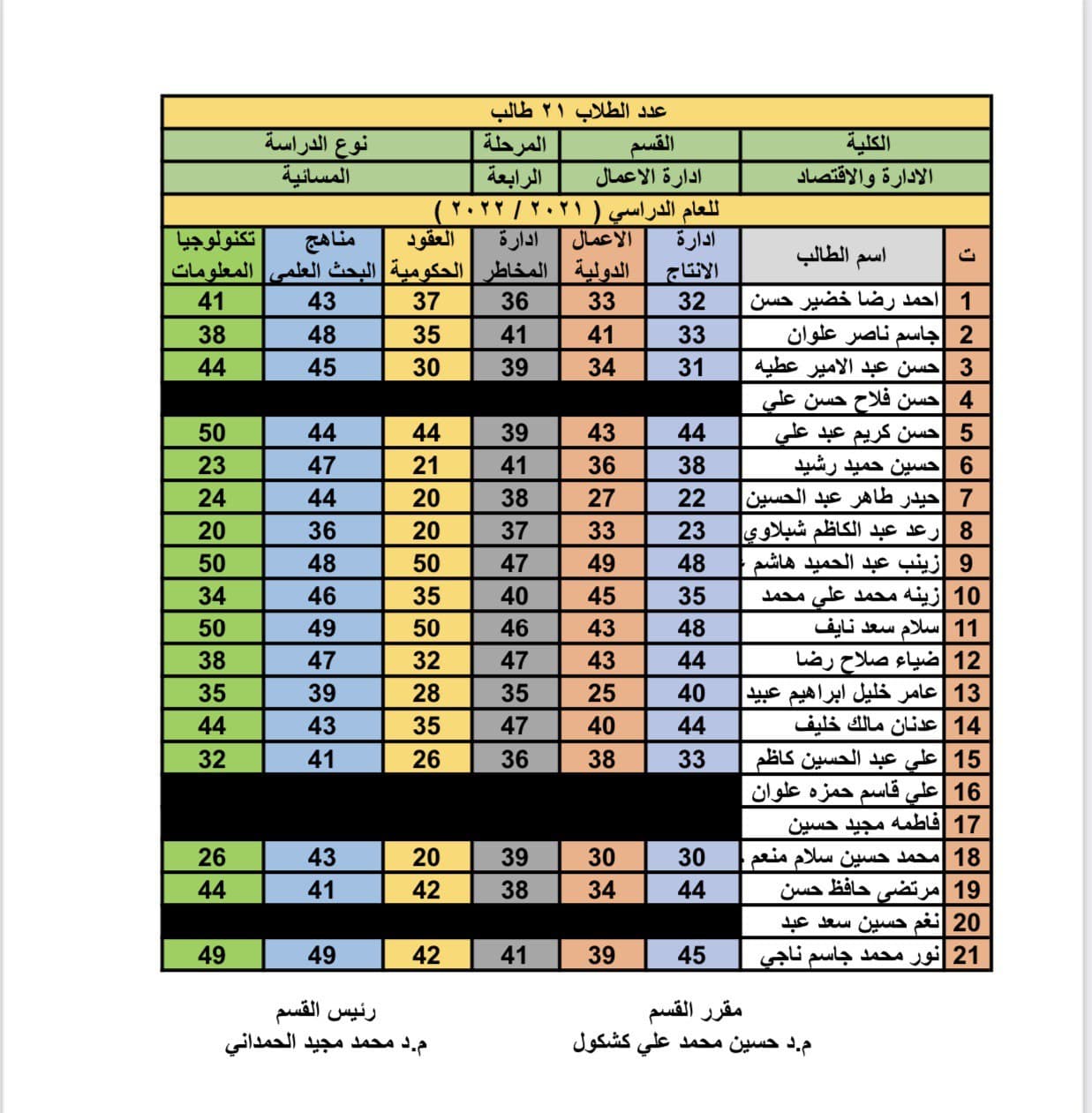 بهذه المناسبة يتقدم السيد عميد الكلية المحترم ومعاون العميد المحترم ورئيس قسم ادارة الاعمال ورئيس قسم المحاسبة والاساتذه الاعزاء في الكلية تهنئة خاصة الى الفريق بمناسبة احرازهم البطولة .مبارك لكم هذا الانجاز وان شاء الله القادم افضل
