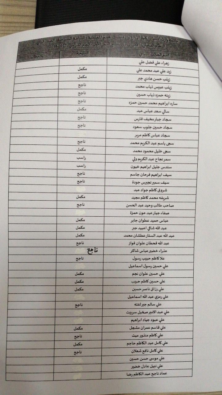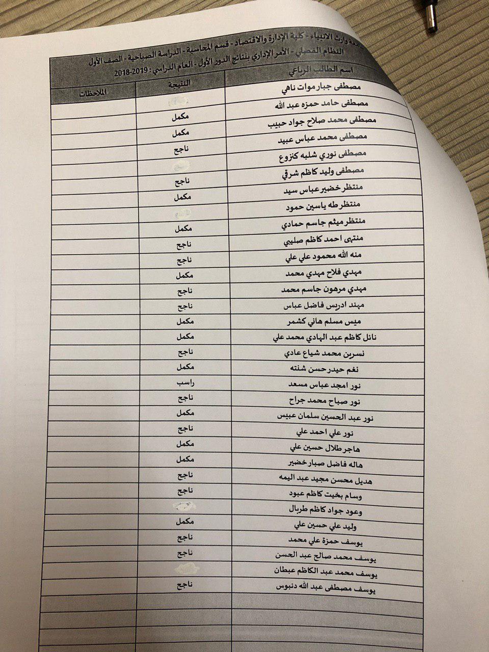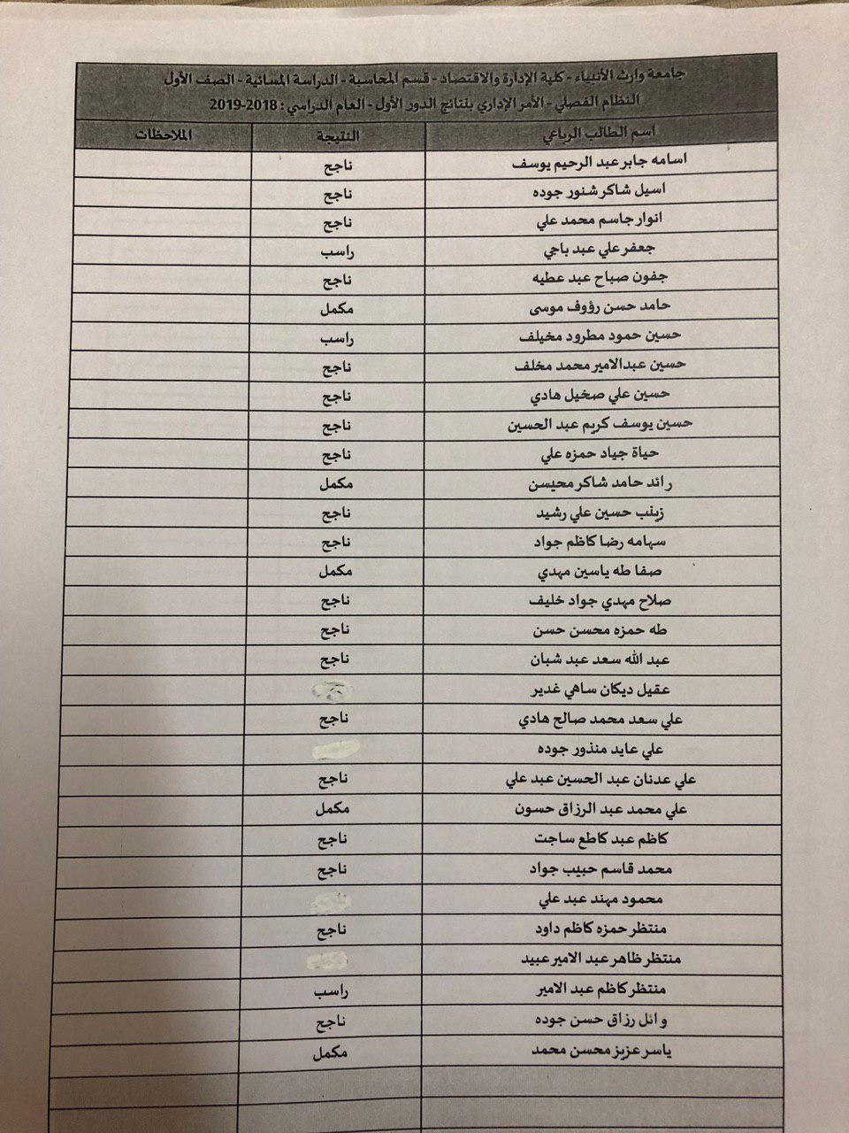 نتائج النهائية للكورس الثاني 2018-2019 / قسم المحاسبة