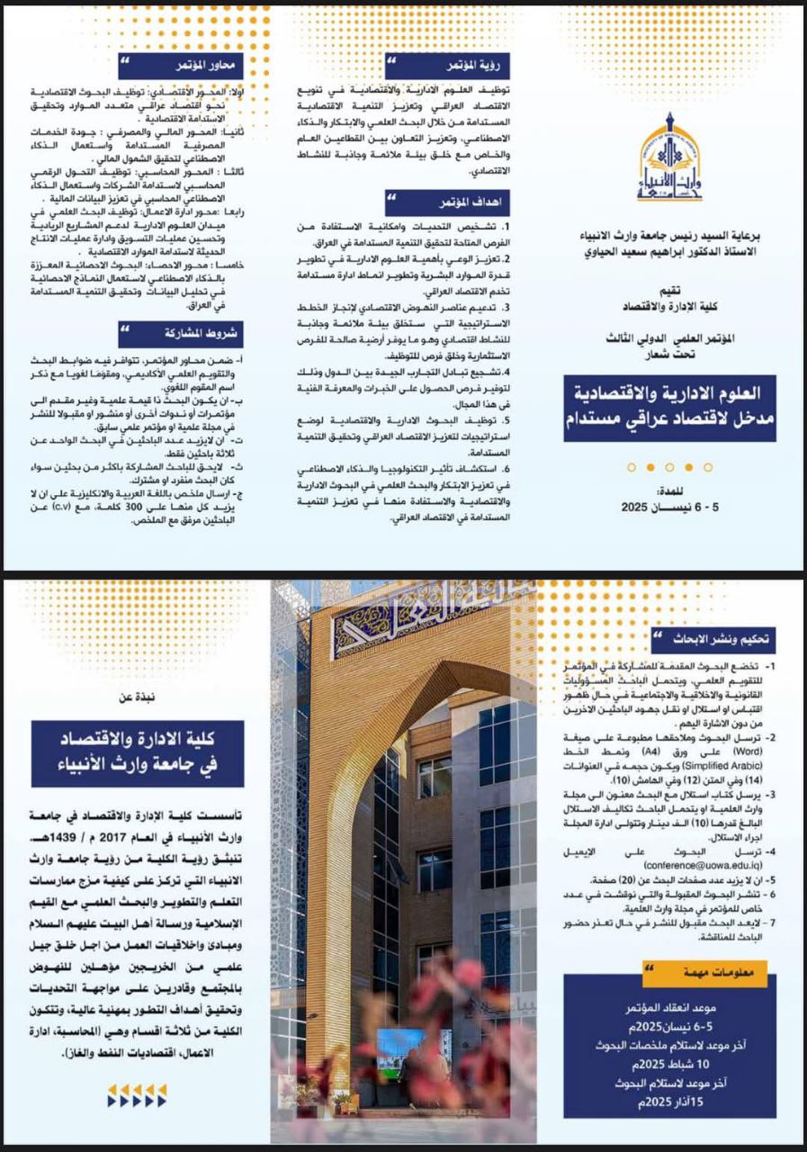 "العلوم الإدارية والاقتصادية: مدخل لاقتصاد عراقي مستدام"