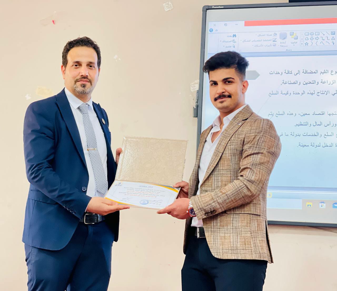 والتي حضرها مجموعة من الاساتذة وطلبة القسم وفي نهاية الندوة تم تكريمهما بشهادة شكر وتقدير من عمادة الكلية ورئاسة القسم على جهودهما المبذولة