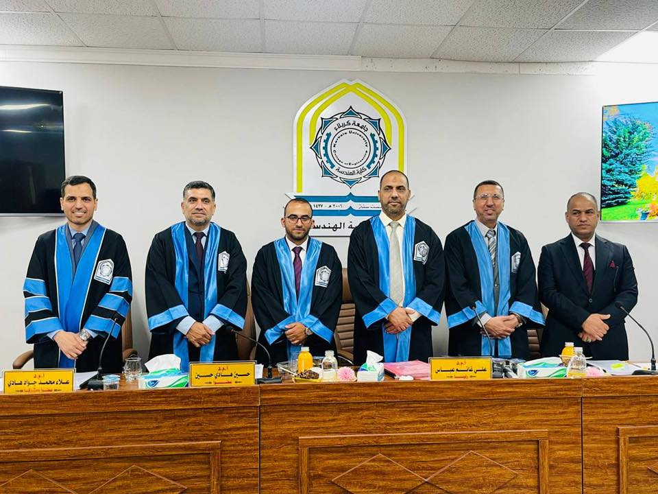 “مشاركة عميد كلية الهندسة في جامعة وارث الأنبياء (ع) في مناقشة رسالة ماجستير في جامعة كربلاء”