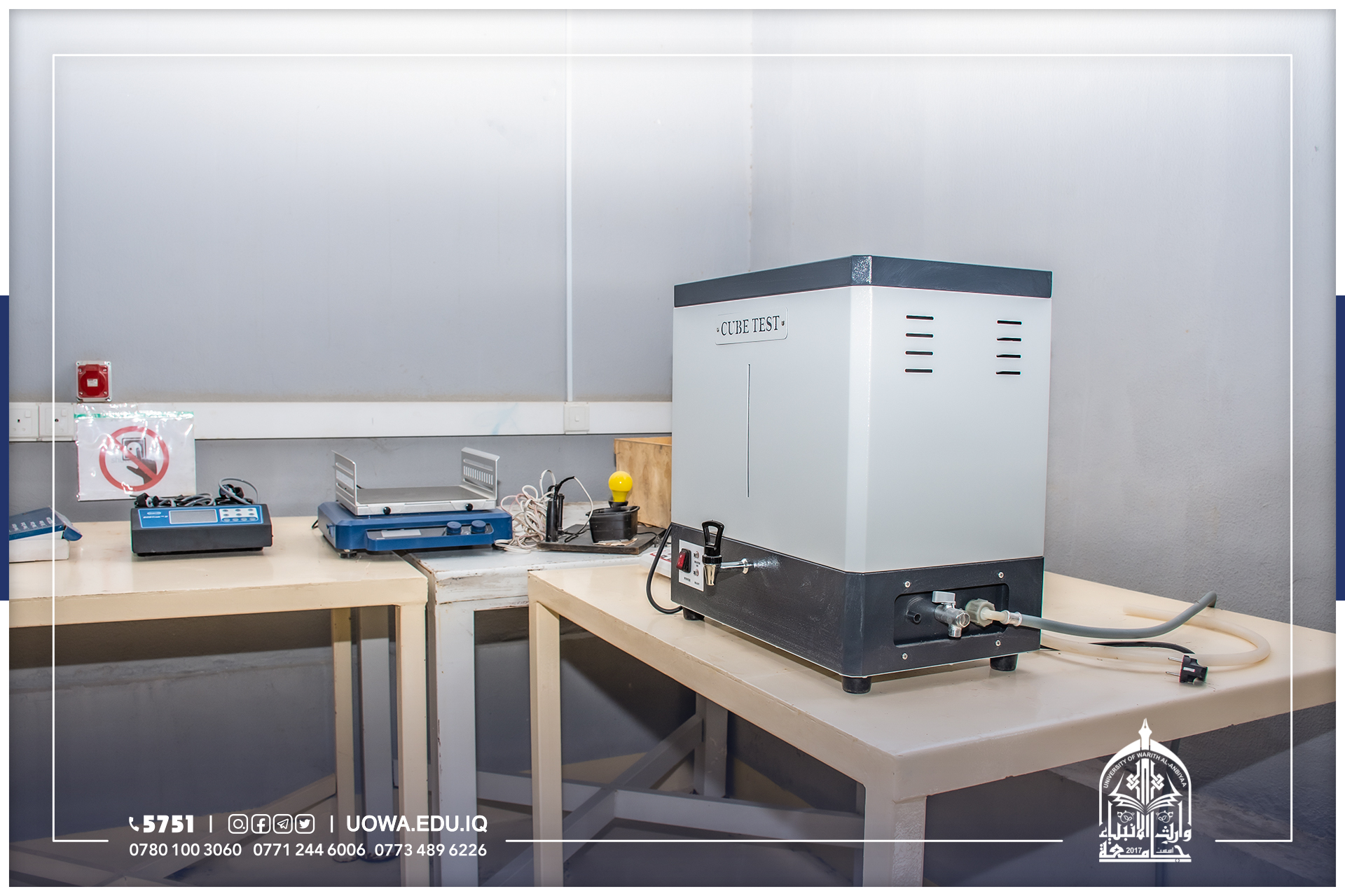 يعنى هذا المختبر بأجراء الفحوصات المختبرية للمواد الانشائية وكذلك الفحوصات المختبرية للإسمنت والمواد الخرسانية والركام (الرمل والحصى) وهذه الفحوصات ضرورية جدا لتمكن الطالب من معرفة كيفية خلط المواد مع بعضها البعض وبنسب معينه ودقيقه ومعرفة المشاكل التي تواجهه في حال لم يتم خلط المواد وفقا للنسب المحددة والظروف القياسية الملائمة التي تؤدي الى نجاح او فشل العينة ومدى مطابقتها للمواصفات الفنية من عدمه بالإضافة الى ذلك تمنح الفحوصات المختبرية دورا مهما يمكن المهندس من معرفة المادة الانشائية الجيدة وتمييزها والتي تؤدي الى زيادة عمر المنشأ