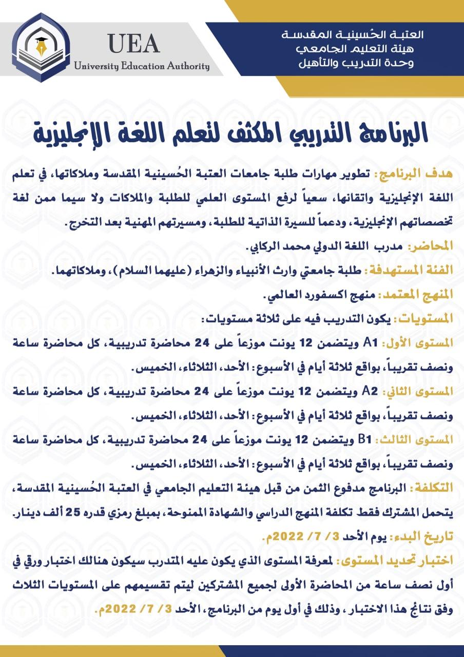 2022/08/19تعلن كلية العلوم الاسلامية في جامعة وارث الانبياء وبالتعاون مع قسم الشؤون الدينية في العتبة الحسينية المقدسة عن مسابقة الانوار المحمدية لحافظات القران الكريم من طالبات معهد السيدة الزهراء للعلوم القرانية وطالبات جامعتي الزهراء ووارث الانبياء.