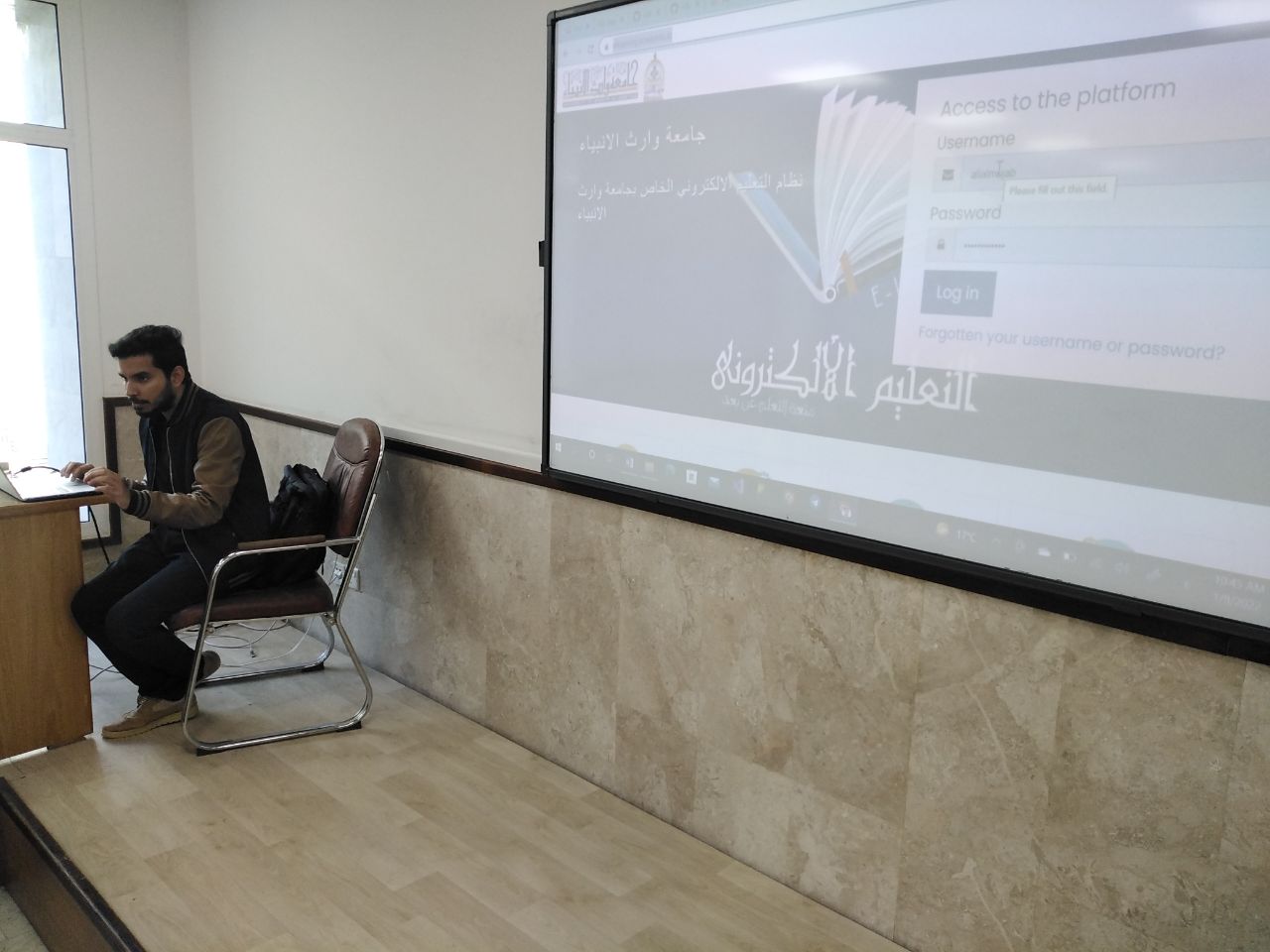اقامة كلية العلوم الإسلامية في جامعة وارث الأنبياء دورة لطلبة المرحلة الأولى حول كيفية التعامل مع منصات التعليم الالكتروني على وجه الخصوص منصة المودل وكيفية استخدام برنامج الكوكل ميت قدمها كل من الدكتور تحسين البدري والمدرس المساعد علي كريم على قاعة مختبر الحاسبات في الكلية.