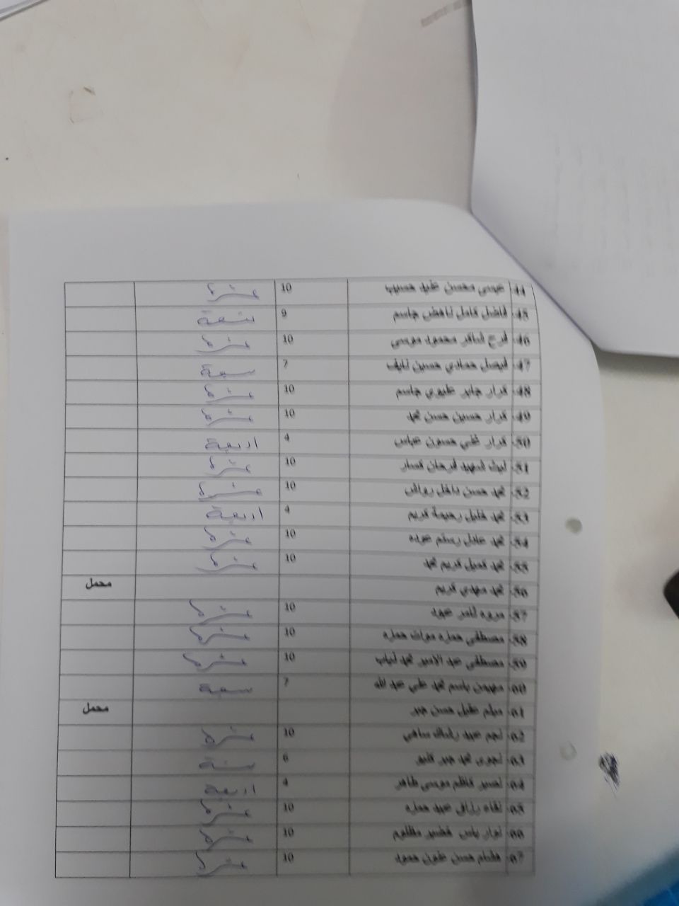 10.        التزام الطلبة بالتعليمات والارشادات الموجودة على ظهر الدفتر الامتحاني