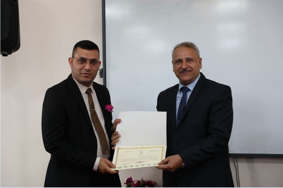 اقامة كلية القانون بتاريخ(13/4/2019) يوم العلم حيث جرى مراسيم الاحتفال بحضور (السيد افضل الشامي )وممثل رئيس الجامعة وجرى تكريم الطلبة الاوائل على الدراسة الصباحية والمسائية للمرحلتين الاولى والثانية بهدايا وكتب شكر كما جرى تكريم الاساتذة .