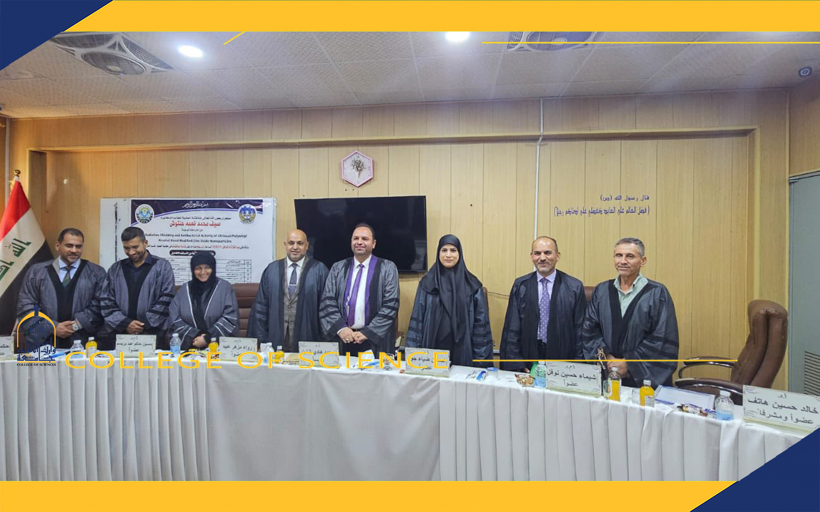 شارك أ.م.د صالح مجيد الخزرجي احد تدريسيي كلية الاعلام في مناقشة رسالة ماجستير في كلية التربية بجامعة القادسة للطالبة هديل حليم سعيدان الموسومة بـ" بناء القصيدة عند محمد إبراهيم يعقوب"