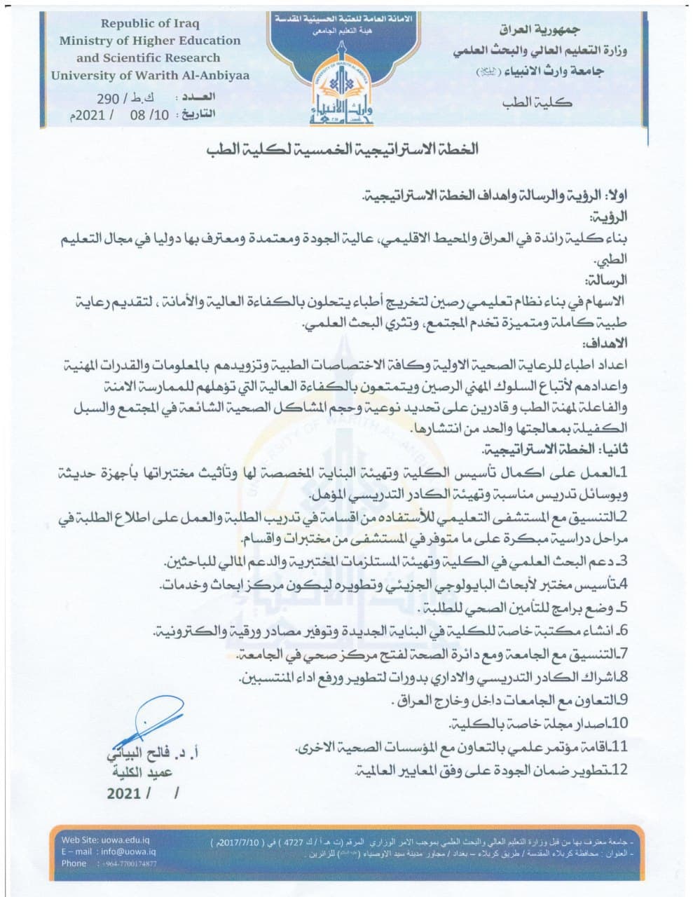 زار وفد من كلية الطب جامعة وارث الانبياء (ع) كلية الطب جامعة الكوفة