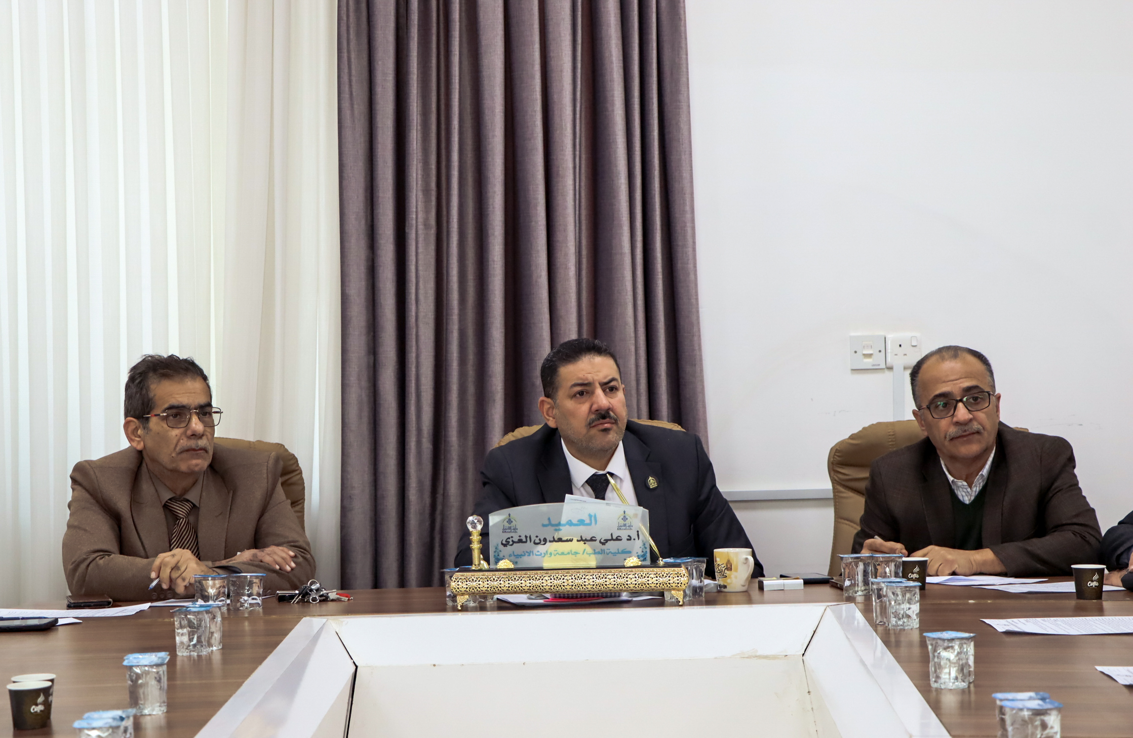 برئاسة عميد كلية الطب الأستاذ الدكتور علي عبد السعدون الغزي، والسيد المعاون العلمي الدكتور علي عبد الرضا الغره والسيد المعاون الإداري الدكتور أنور الصادق الدهان، انعقد اجتماع مجلس الكلية الاول لمناقشة جملة من القضايا المهمة.