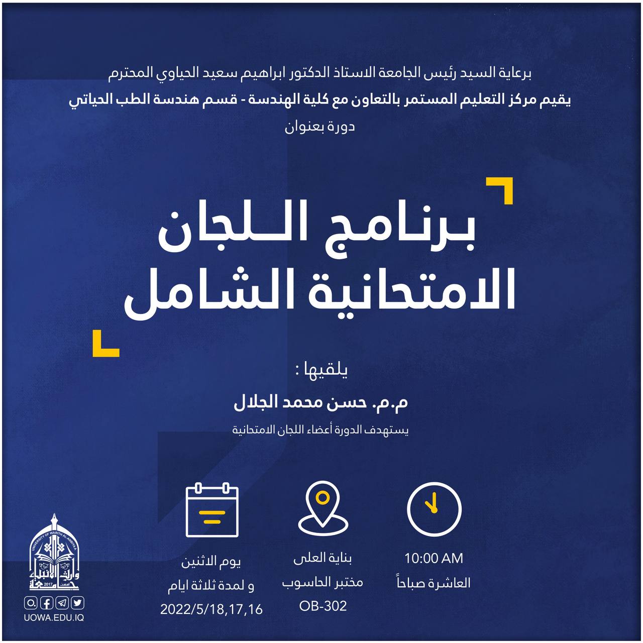 علما أن المسابقة أجريت في يوم السبت الموافق 14/5/2022على قاعة مختبر الحاسبات المركزي