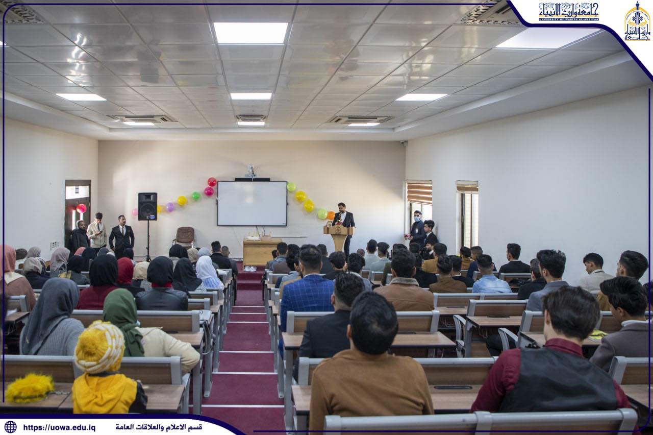 بحضور السيد رئيس الجامعة الأستاذ الدكتور إبراهيم الحياوي والسيد المساعد الإداري الأستاذ الدكتور نوفل الاعرجي والسيد عميد الكلية الأستاذ الدكتور عواد الخالدي والسادة أعضاء الهيئة التدريسية في الكلية، أقام طلبة الكلية حفلاً للتعارف لطلبة المرحلة الأولى/قسم المحاسبة ،حيث القى السيد رئيس الجامعة كلمةً رحب فيها بالطلبة الجدد متمنياً لهم عاماً مكللاً بالنجاح والتفوق، مؤكداً في كلمته على ضرورة اهتمام الطلبة بالجانب العلمي والأخلاقي.
