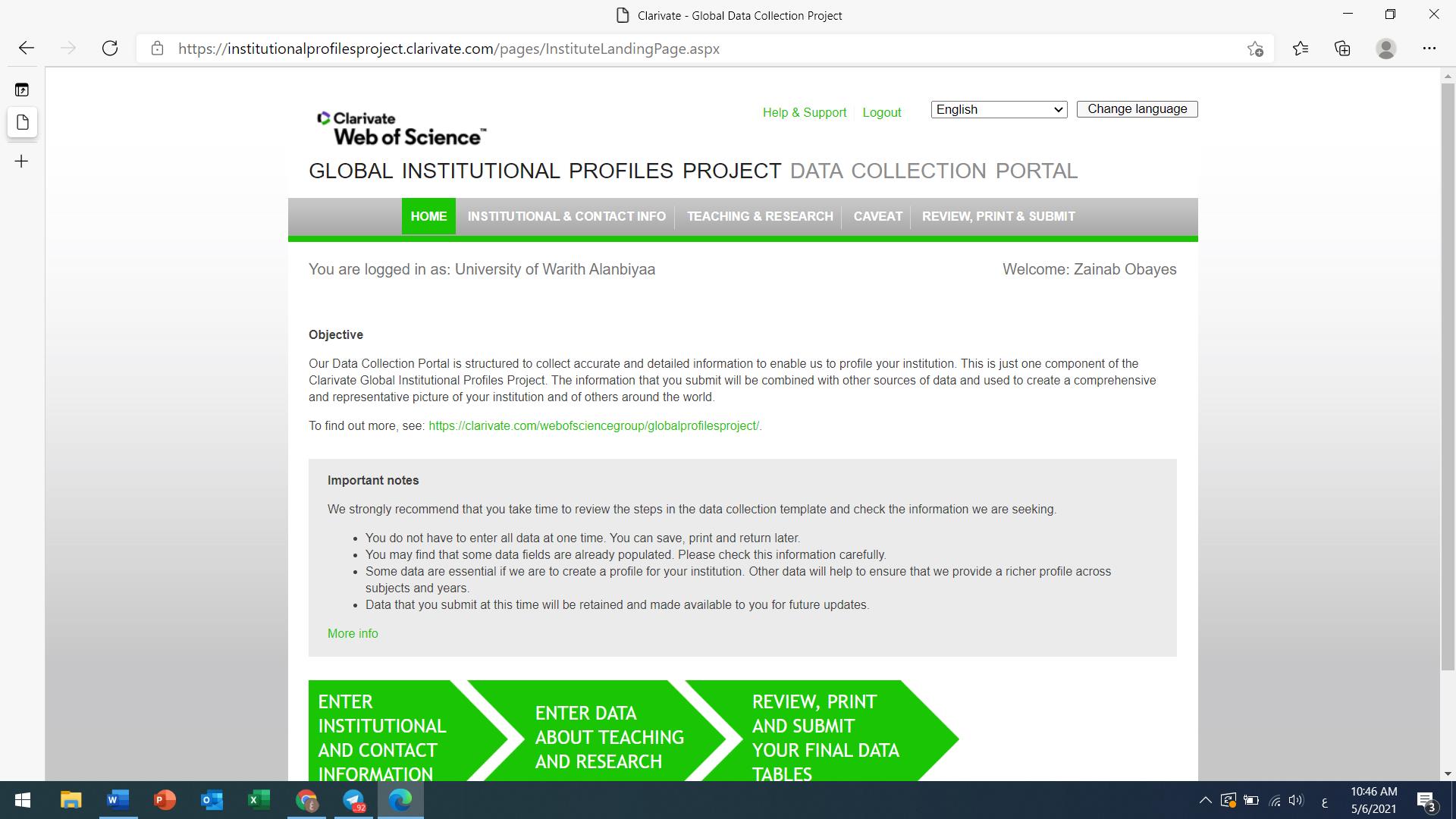 6. تم انشاء بروفايل خاص بجامعة وارث الانبياء على صفحة التصنيف البريطاني العالمي The Times Ranking