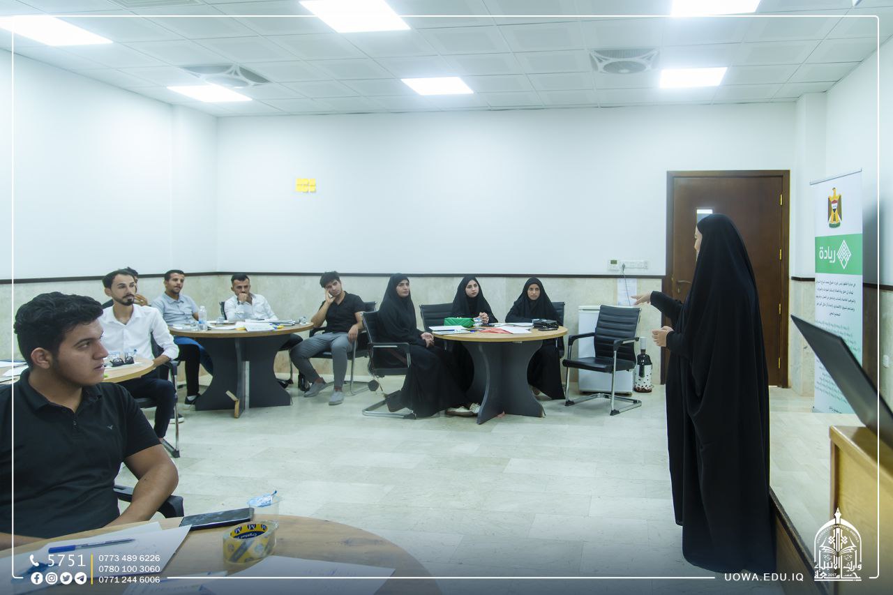 استمرار الدورات التدريبية التي تقيمها جامعة وارث الأنبياء/ شعبة التأهيل والتوظيف  ضمن مبادرة"ريادة" الحكومية التي تهدف إلى دعم مشاريع الطلاب والخريجين ،بمشاركة المدرب صفاء السيلاوي، على مدار أسبوعين في الشهر.