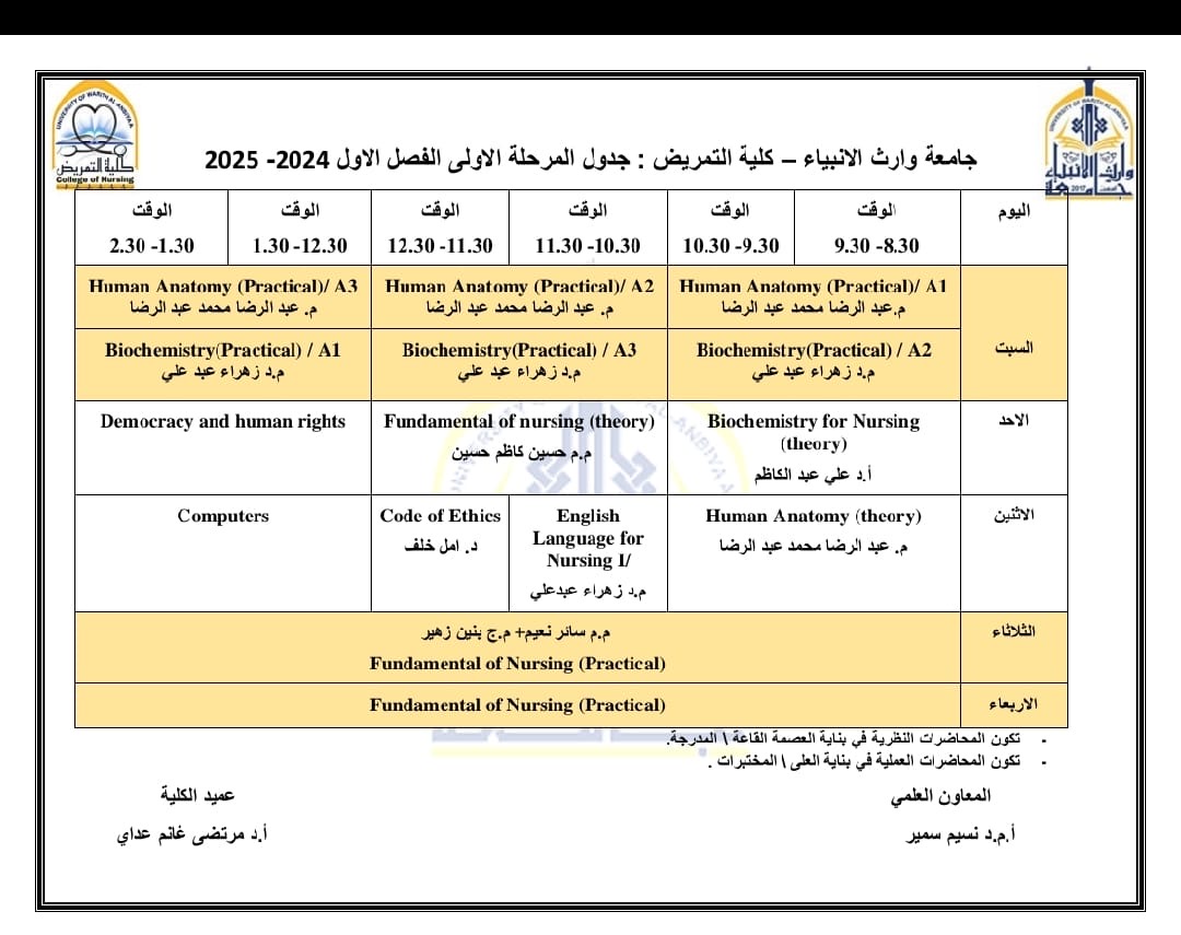 باشراف عمادة كليه التمريض المتمثله بالاستاذ الدكتور مرتضى غانم الجبوري واساتذة مادة اسياسيات التمريض تم اجراء امتحان المد الثاني في المركز الوطني لتقييم الكفايات الطبية (OSCI) لطلبة المرحلة الاولى في كلية التمريض