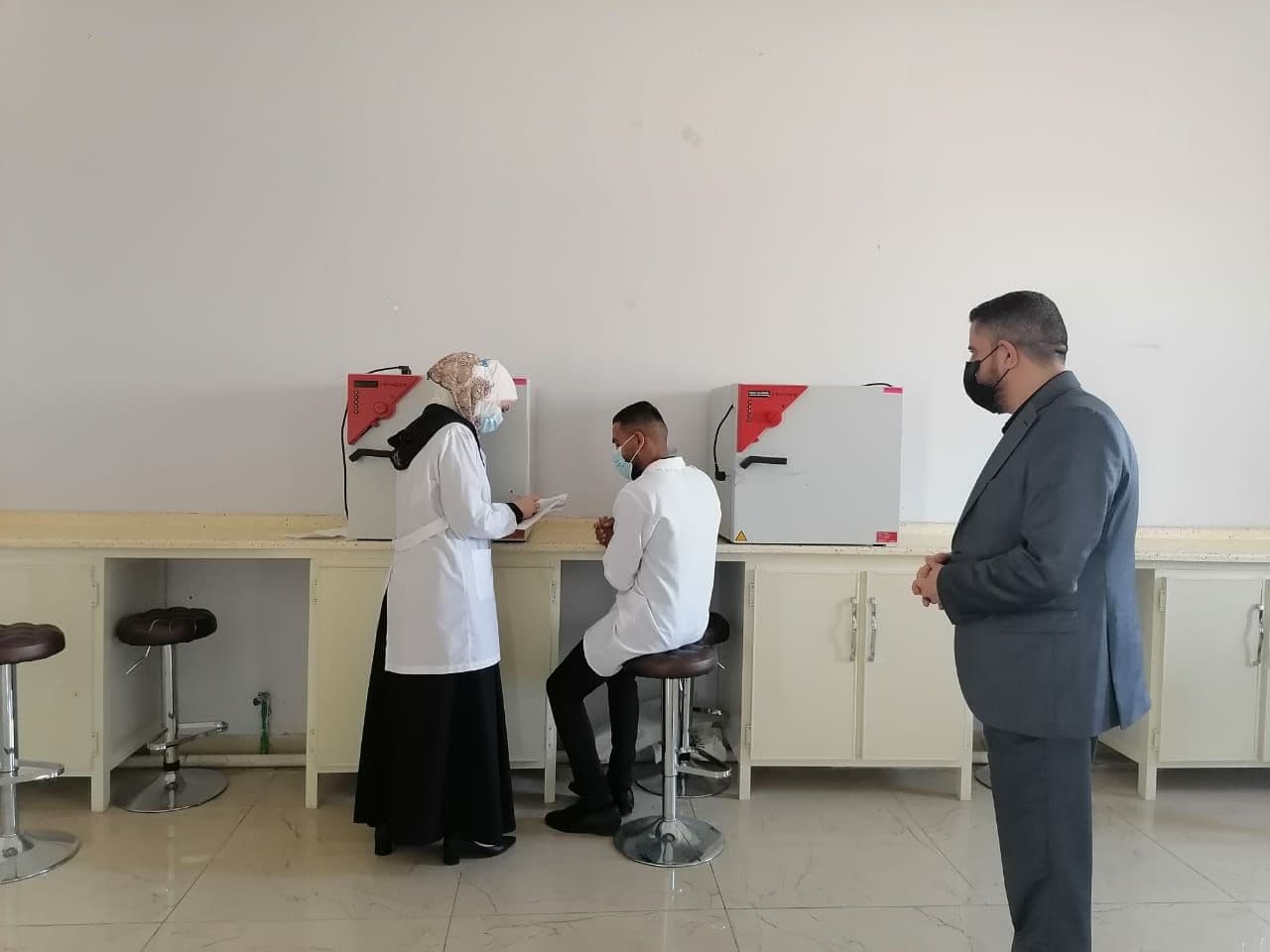 تابع السيد عميد كلية التمريض الاستاذ المساعد الدكتور مرتضى غانم الجبوري سير الامتحانات النهائية العملية الحضورية لطلبة كلية التمريض