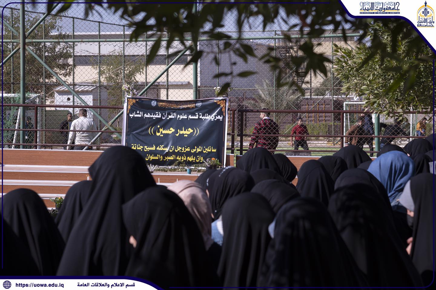 بالصور .. بحضور السيد رئيس الجامعة الاستاذ الدكتور ابراهيم الحياوي ،عمادة وطلبة كلية العلوم الاسلامية ينظمون وقفة حداد على روح المرحوم الطالب ( حيدر حسين ) في قسم علوم القران، سائلين الله (عز وجل) ان يتغمده برحمته ،ويلهم ذويه الصبر والسلوان.
