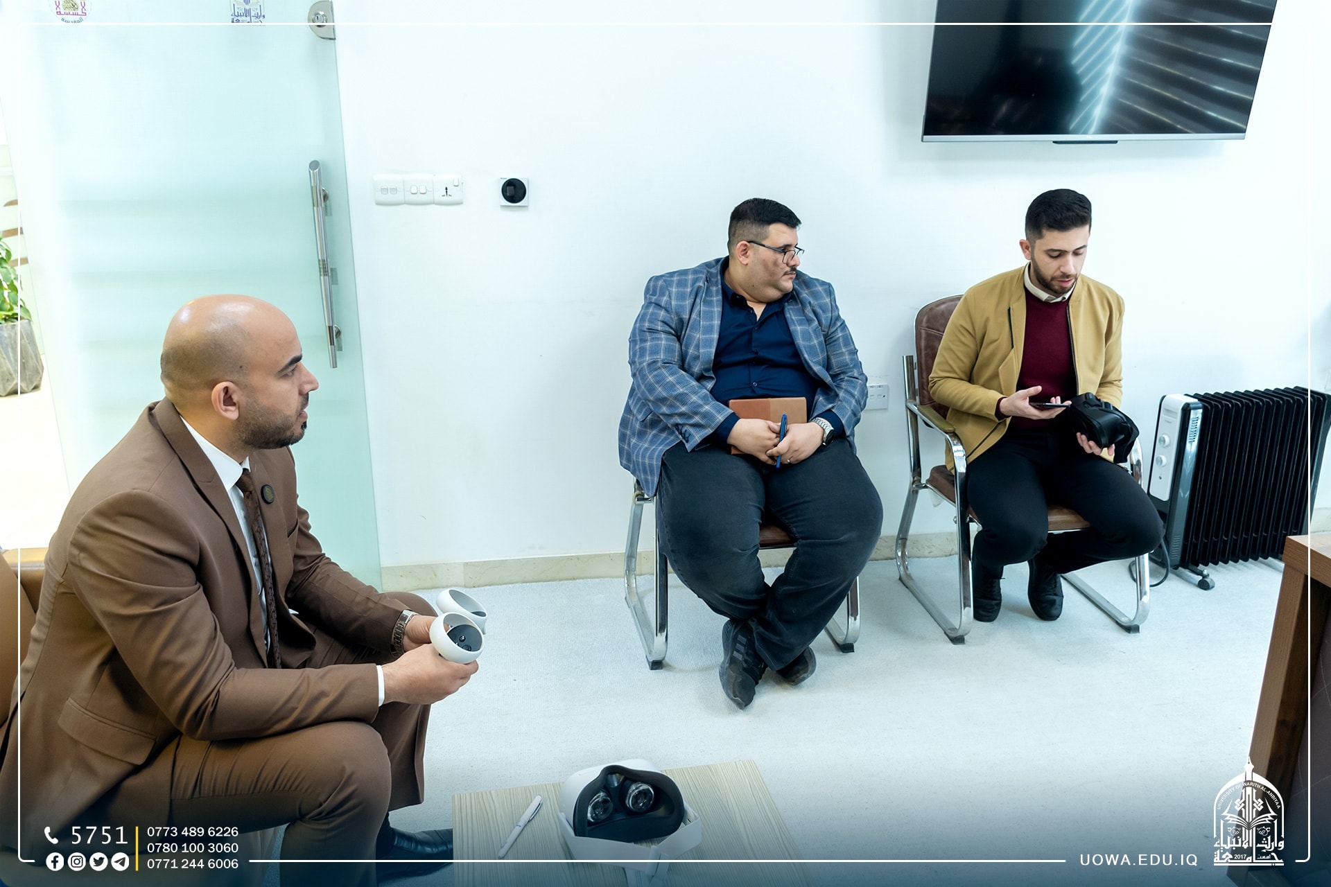 ضمن جهود رئاسة جامعة وارث الانبياء(عليه السلام) لإدخال تقنيات مختبرية حديثة، اجتمع السيد رئيس الجامعة الاستاذ الدكتور ابراهيم سعيد الحياوي مع السيد عميد كلية الهندسة الاستاذ الدكتور واقد الموسوي والسيد مدير مركز التعليم المستمر الدكتور حيدر الغانمي، لبحث امكانية إنشاء مختبرات افتراضية داخل الجامعة.