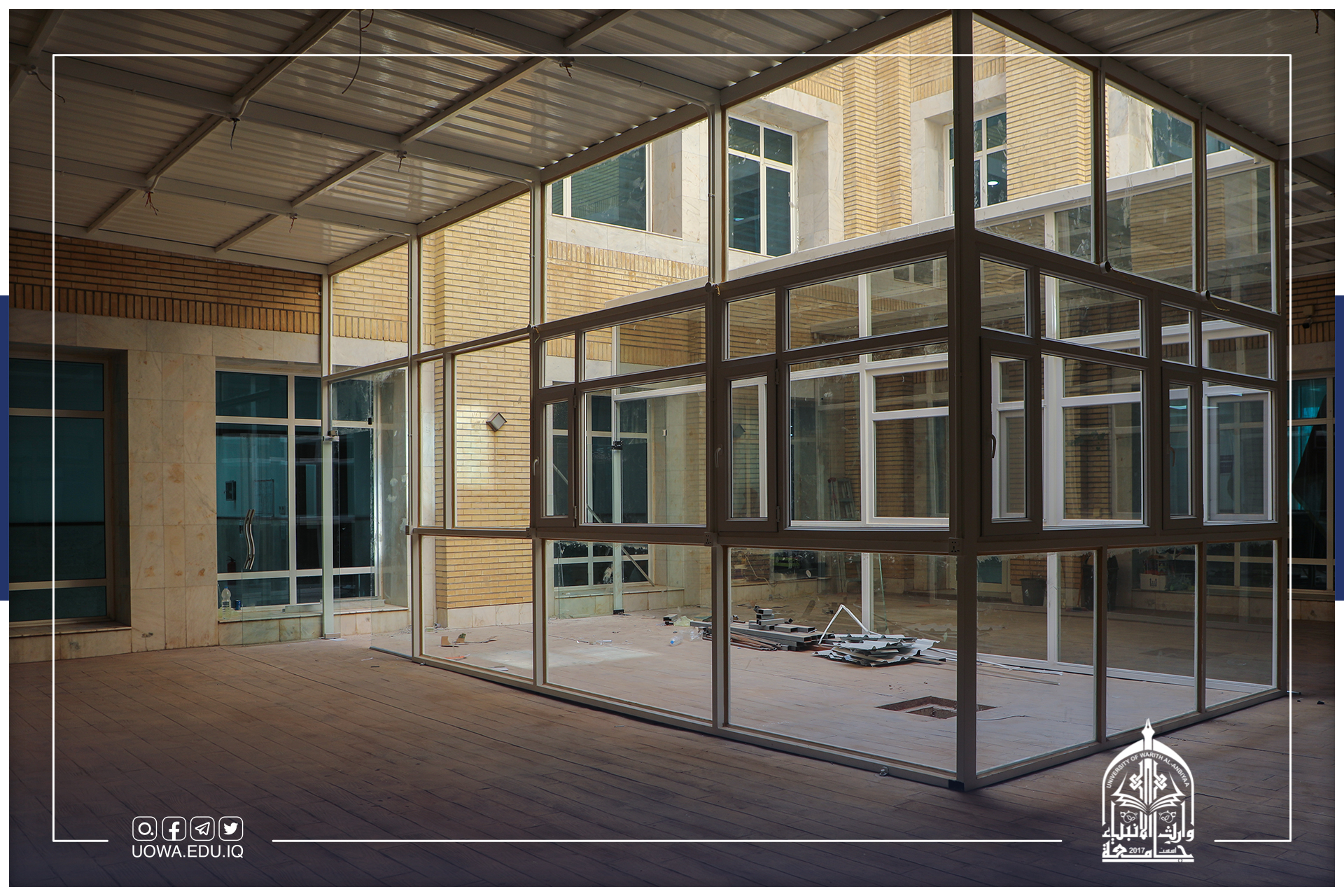 تتواصل جهود ملاكات قسم شؤون الديوان في جامعة وارث الانبياء "عليه السلام" إعادة تأهيل وترتيب الممرات ومداخل الكليات والمجمعات الخدمية، سعياً منها لتوفير كل سبل الراحة لطلبتنا الاعزاء.
