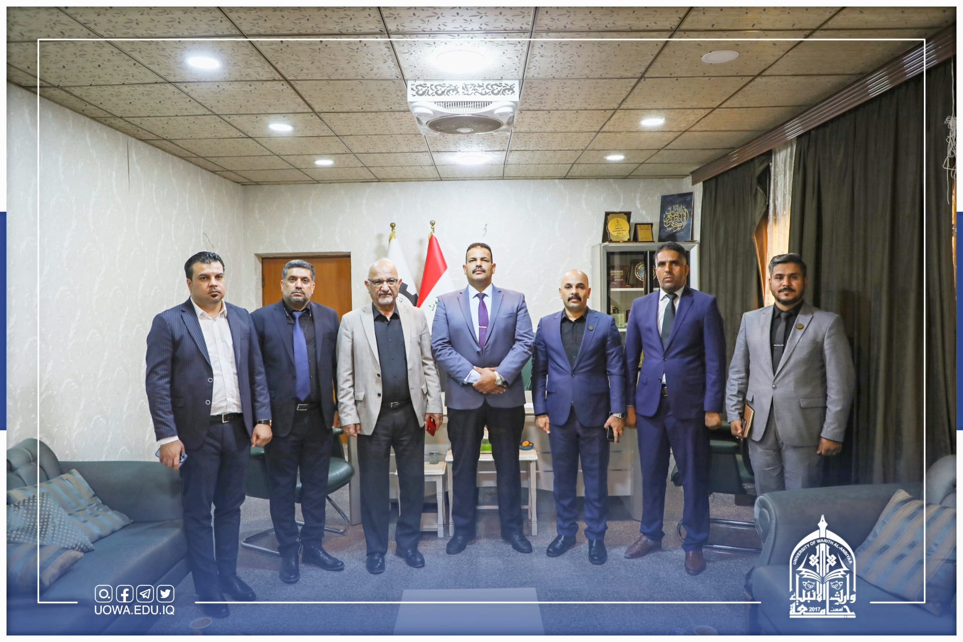 تشرفت جامعة وارث الانبياء (عليه السلام) بزيارة سماحة المتولي الشَّرعي للعتبة الحسينية المقدسة الشيخ عبد المهدي الكربلائي( دام عزة )، وكان باستقباله السيد رئيس الجامعةا.د ابراهيم الحياوي والسيد المساعد الاداري ا.د. نوفل الاعرجي، وبعض السادة عمداء الكليات.