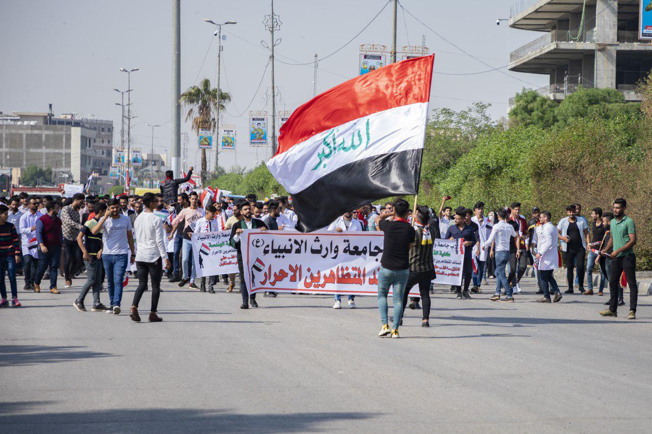 Part of University of Warith Alanbiyaa Staff and Students Participation in the Peaceful Demonstrations in Karbala City