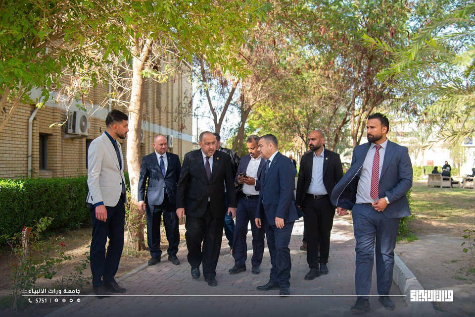 The President of Warith Al-Anbiyaa University, Professor Dr Ibrahim Saeed Al-Hayyawi, accompanied by the Assistant President for Academic Affairs, Professor Dr Waqed Al-Moussawi, conducted a field visit across the University campus to review the progress of the educational process and the academic environment experienced by students. During the visit, he listened to students’ observations and identified their needs.