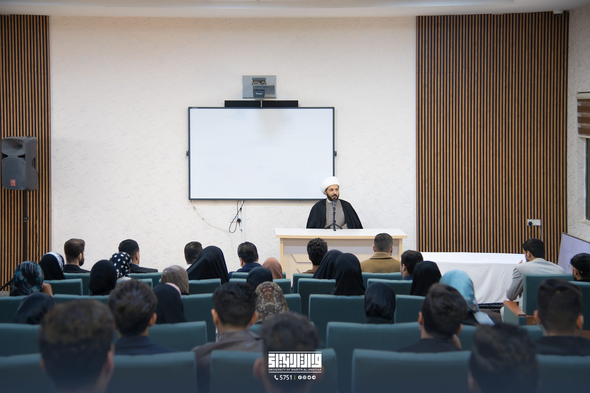The College of Law at the University of Warith Al-Anbiyaa (peace be upon him), in collaboration with the Islamic Center for Studies and Research in Tunisia, organized a dialogue session on the relationship between law and Islamic Sharia. The event featured the presence of Sheikh Ahmed Salman, the director of the center, who answered questions from law students regarding various aspects related to the compatibility of laws with Islamic Sharia.